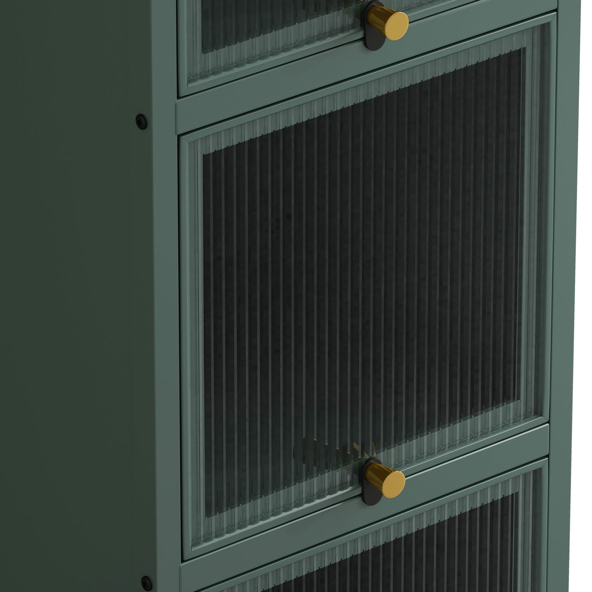 4 Tier Glass Door Cabinet For Entryway Living Room - Dark Green