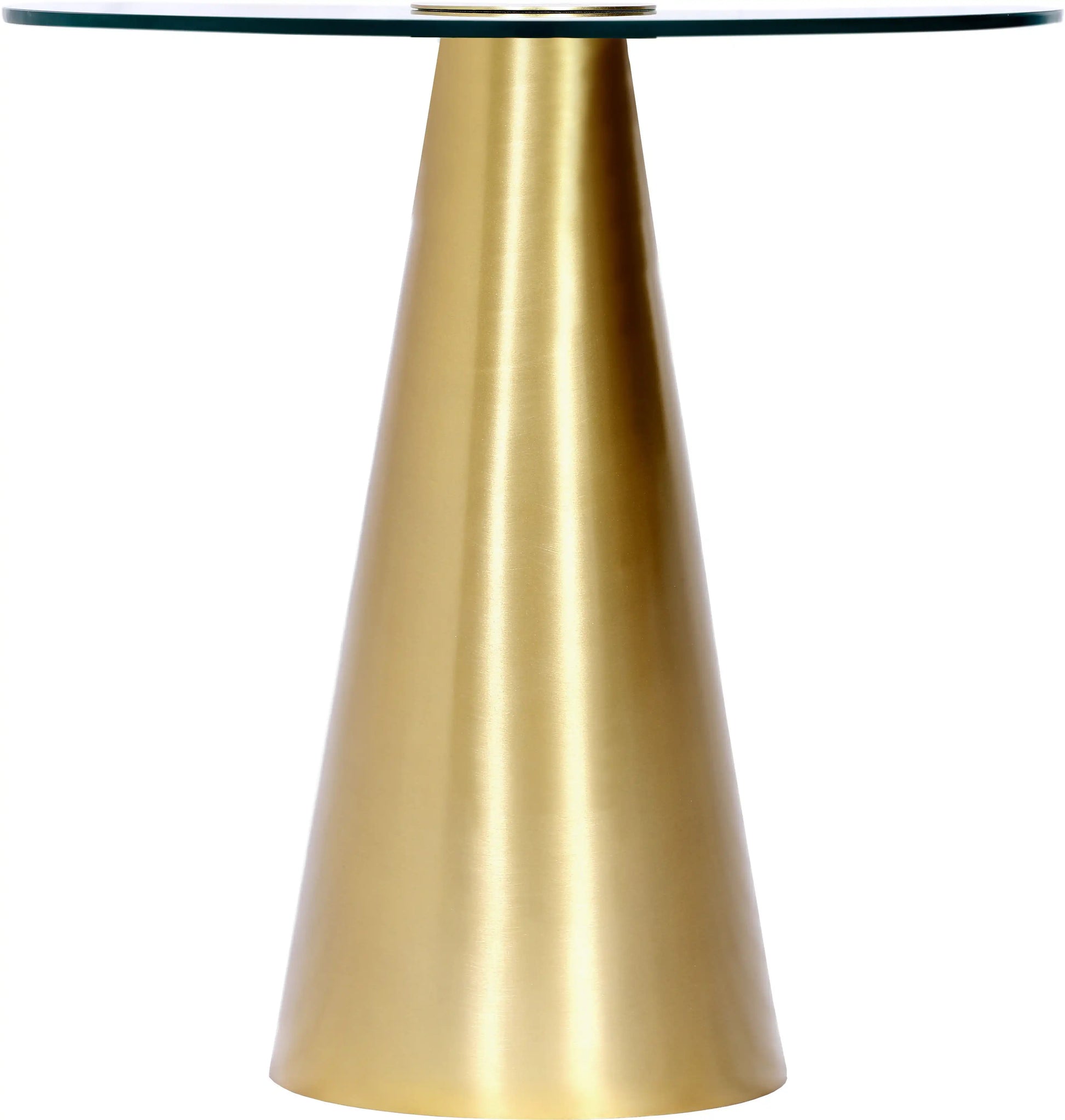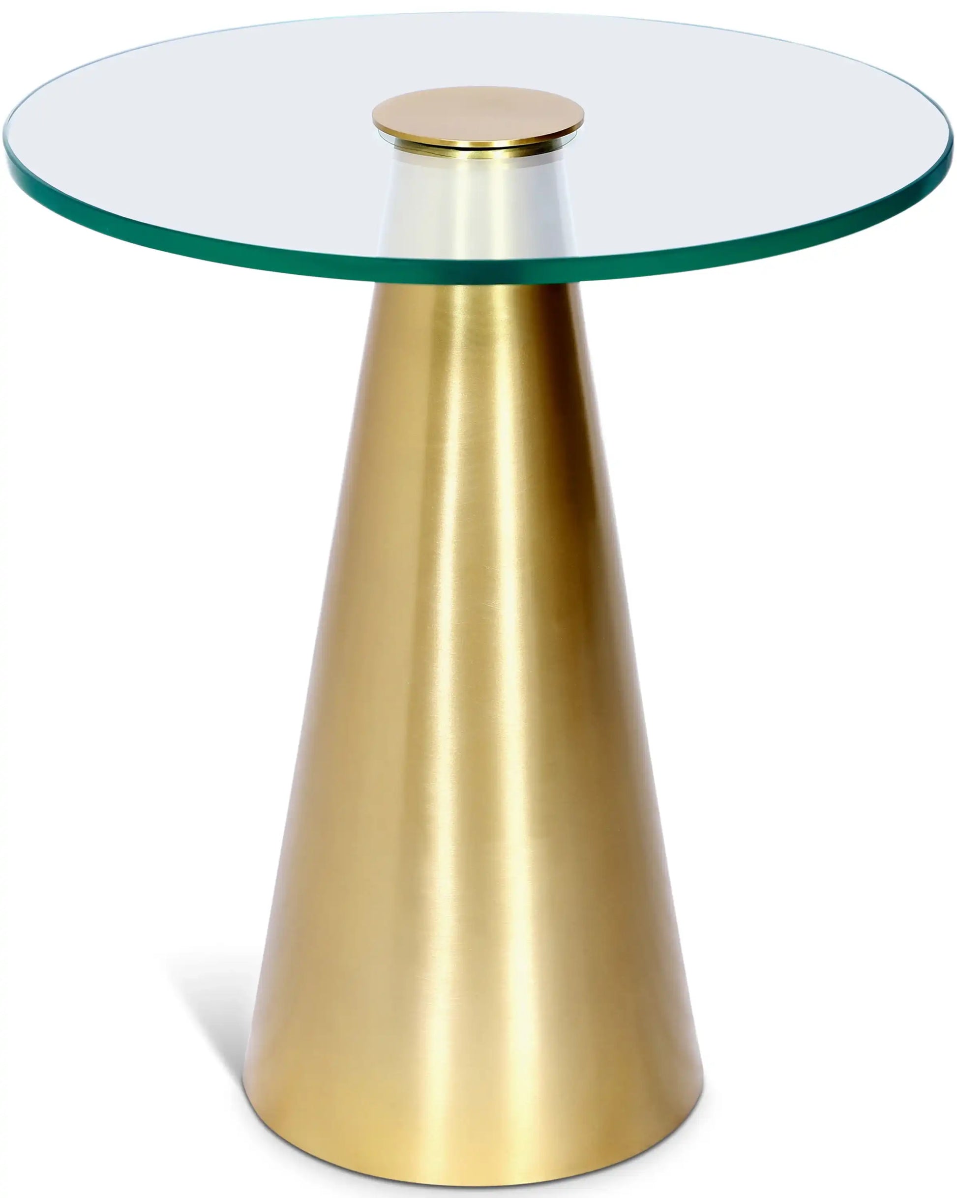 Catch the eye in an instant with this Glassimo end table. This beautiful table features an elegant design that's destined to garner its fair share of oohs and ahhs from everyone who sees it. The glass top allows full view of the brushed gold finish, making this metal table a show stopper from every angle. It's chic and sleek on its own, or pair it with the matching Glassimo coffee table for even more stares.