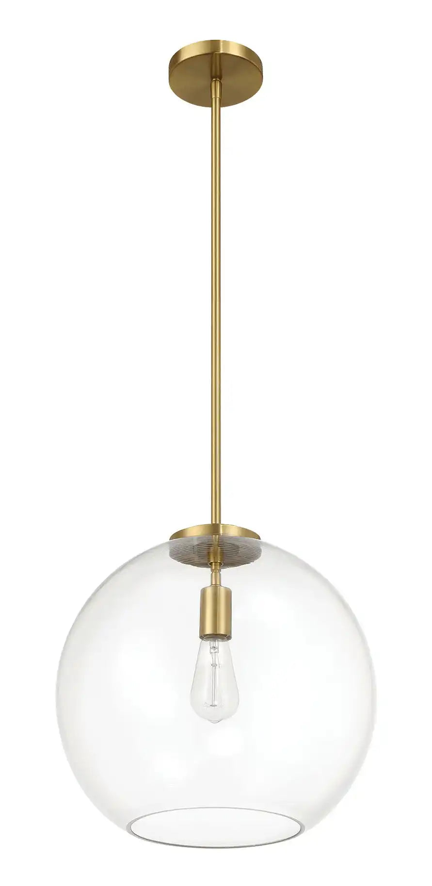 - Elegant Design: The Gleam Single Light Pendant features a sleek and sophisticated design with a clear globe glass and luxurious satin brass finish, making it a stylish addition to any space.