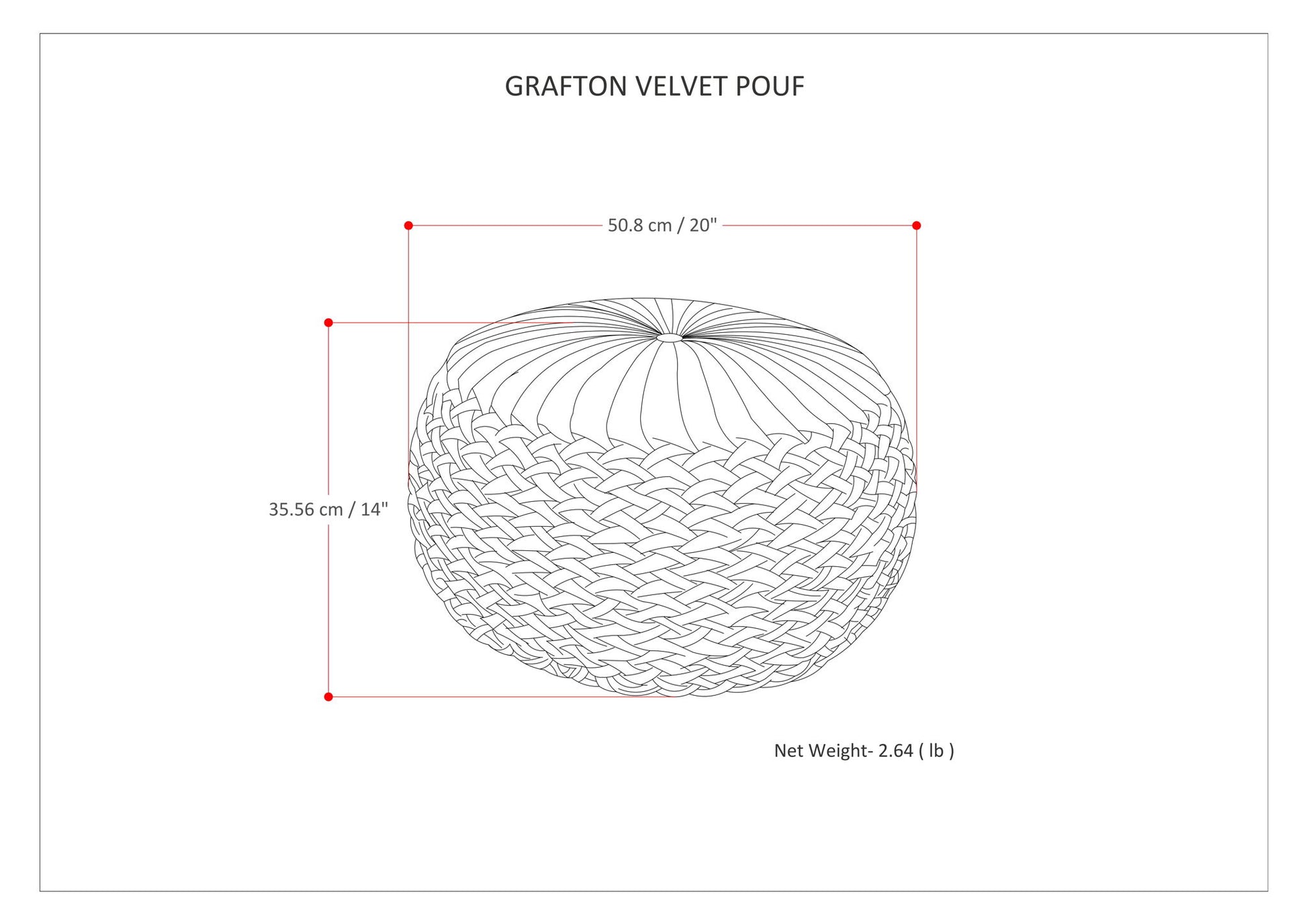 - Versatile round shape features button tufted pleated top and woven detailed sides
