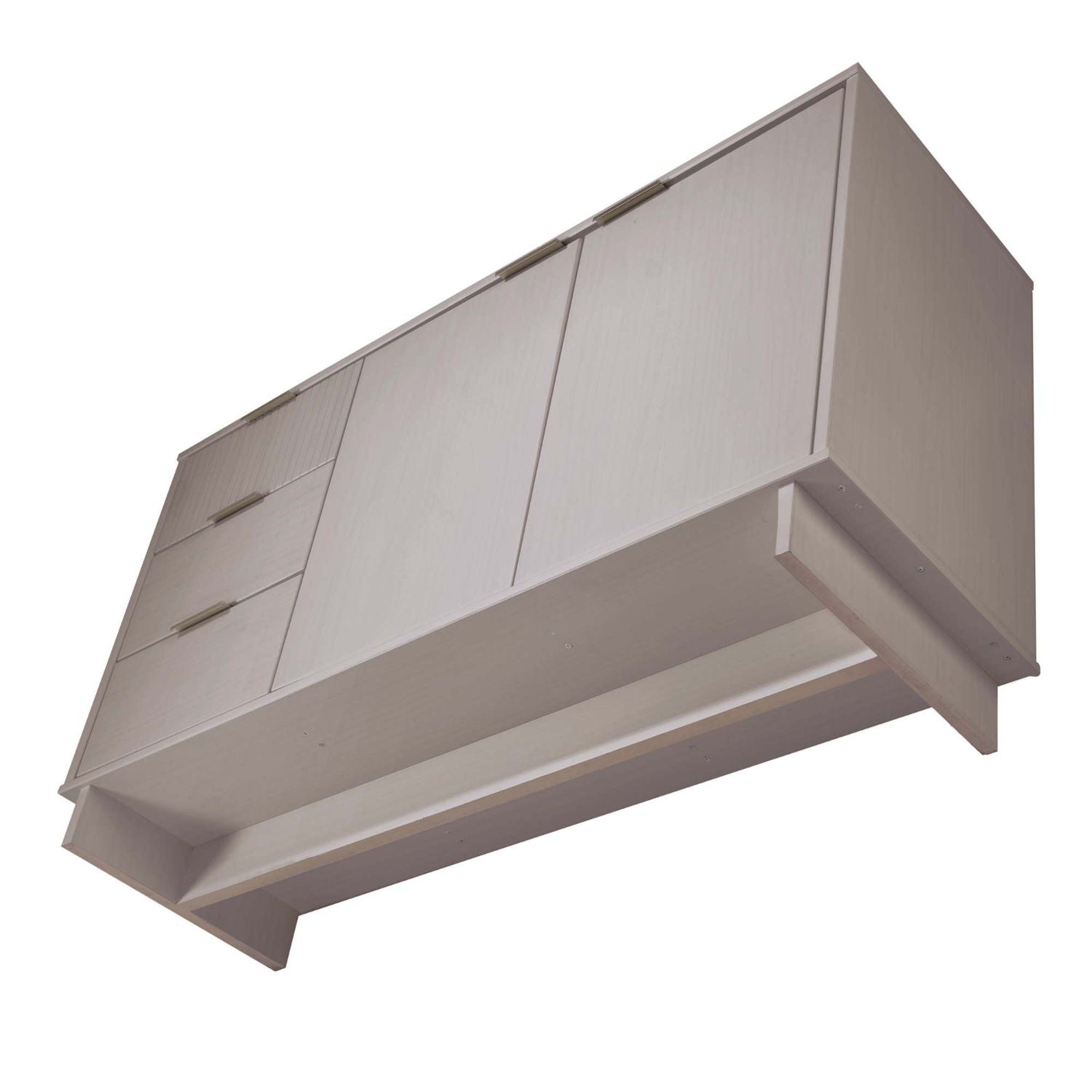 - Full Extension Drawers: Three spacious drawers with smooth glide motion and vertical textured fronts.