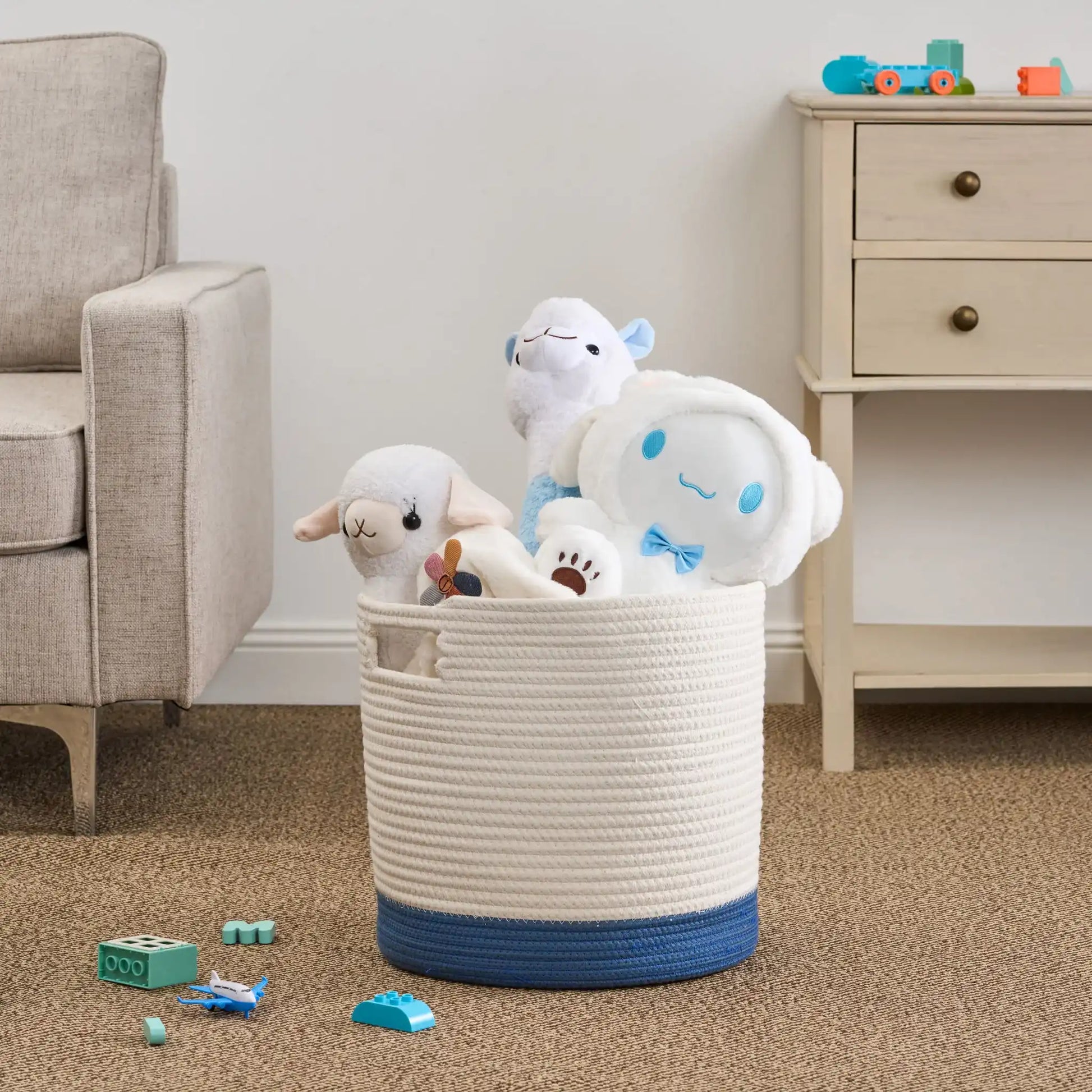 Gregory - Cotton Round Laundry And Storage Basket Medium - White / Blue