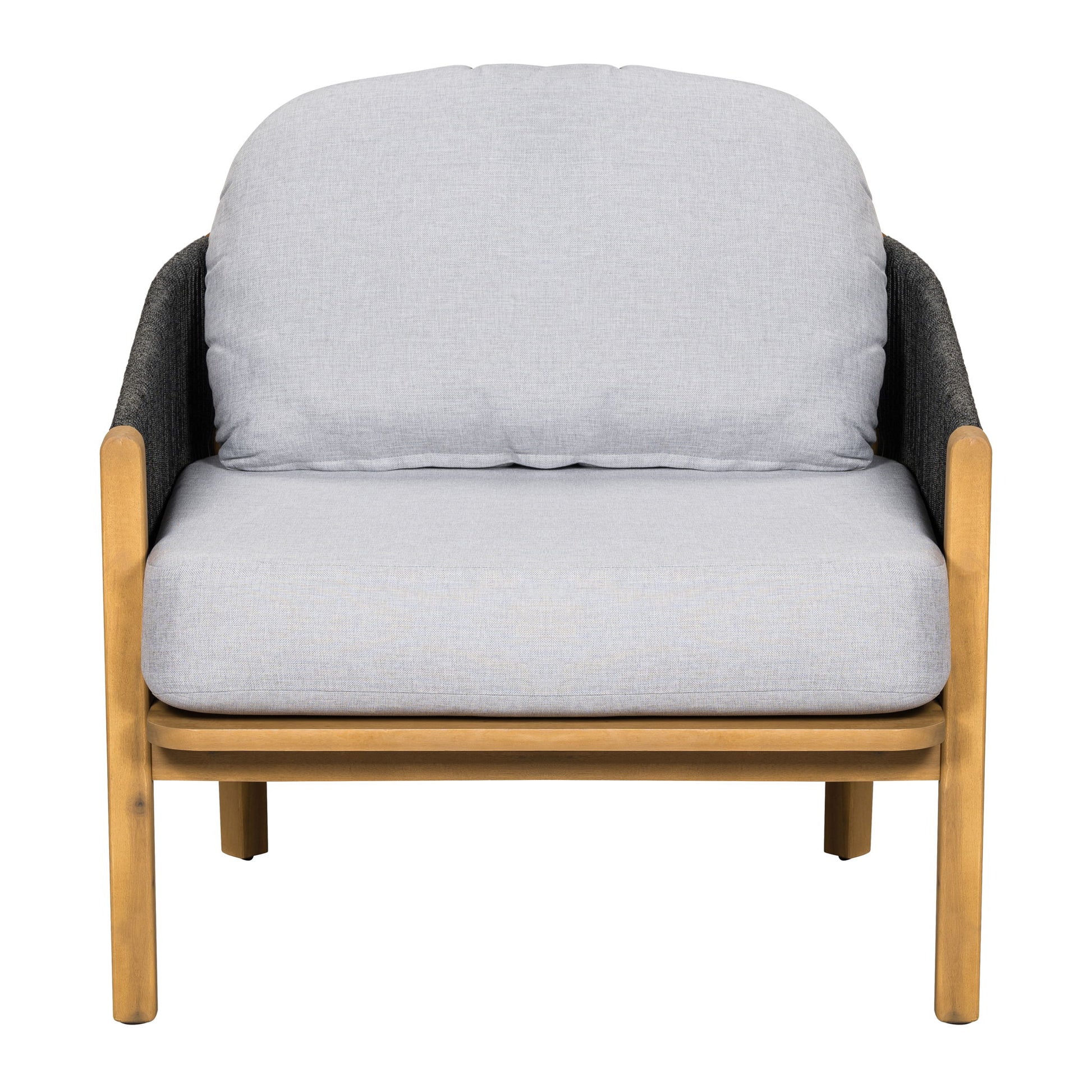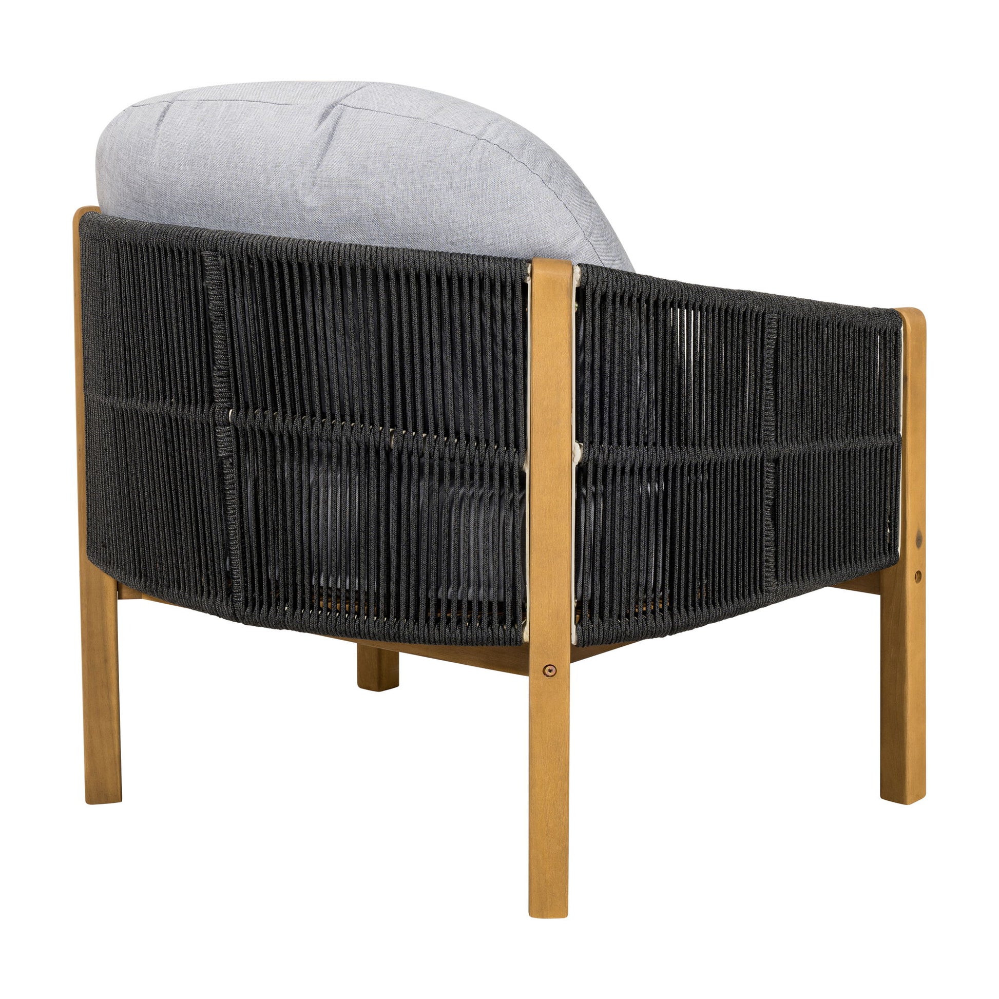 Grotta - Outdoor Wood Club Chair (Set of 2) With Rope And Cushion Frame - Gray / Teak