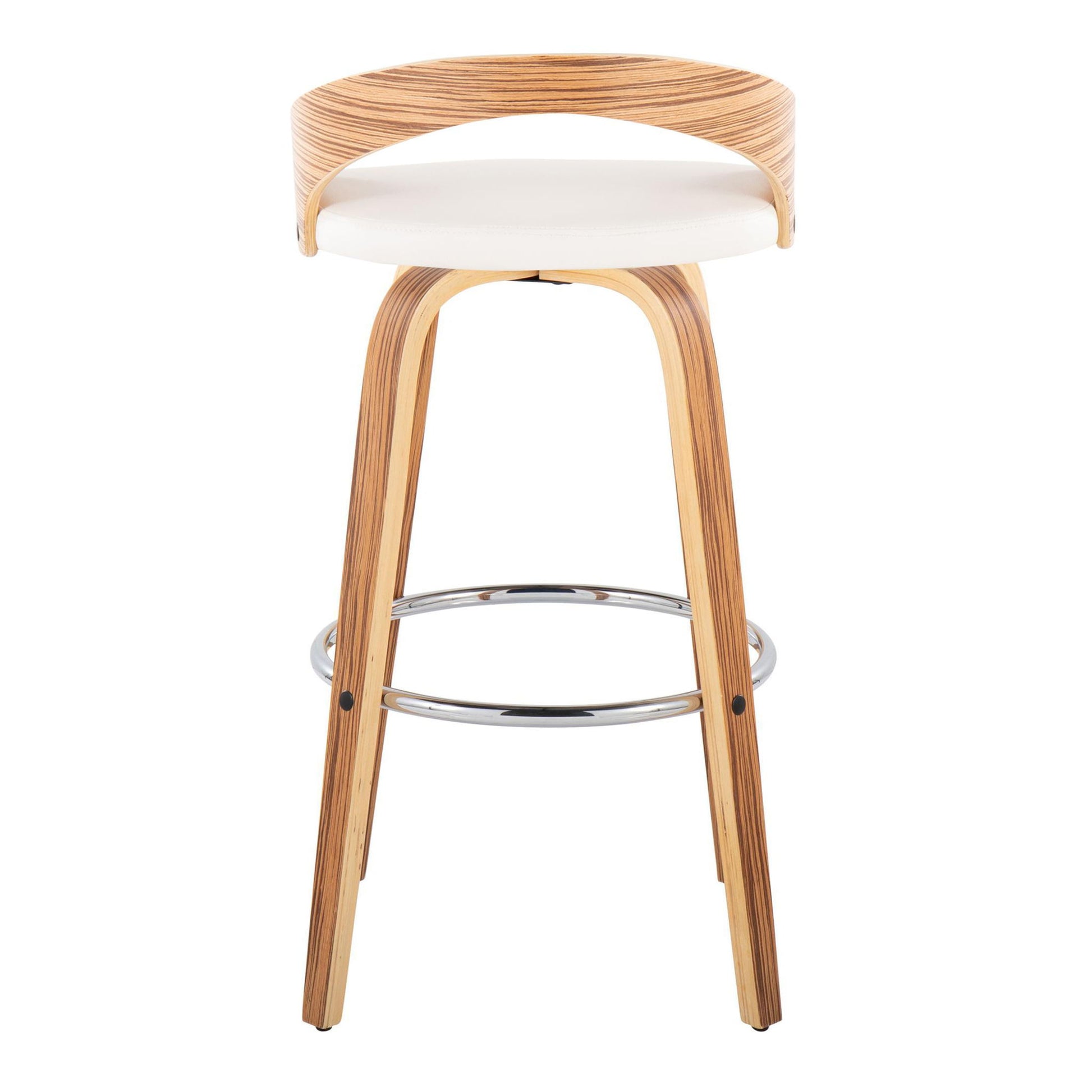 Grotto - Mid-Century Modern Fixed Height Barstool With Swivel With Round Footrest (Set of 2) - Zebra / White