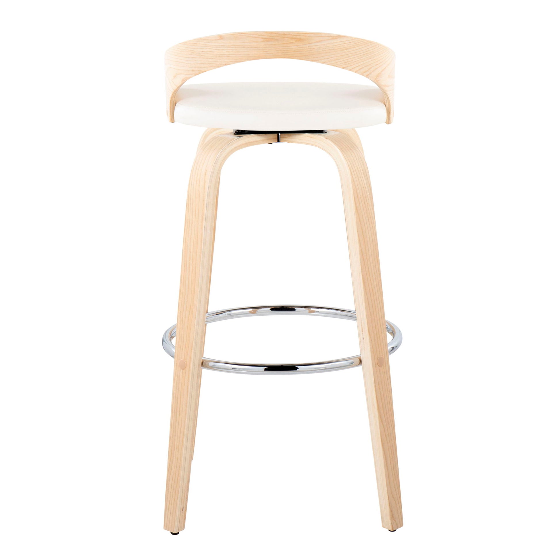 Grotto - Contemporary Fixed Height Barstool With Swivel With Round Footrest (Set of 2) - Natural / White