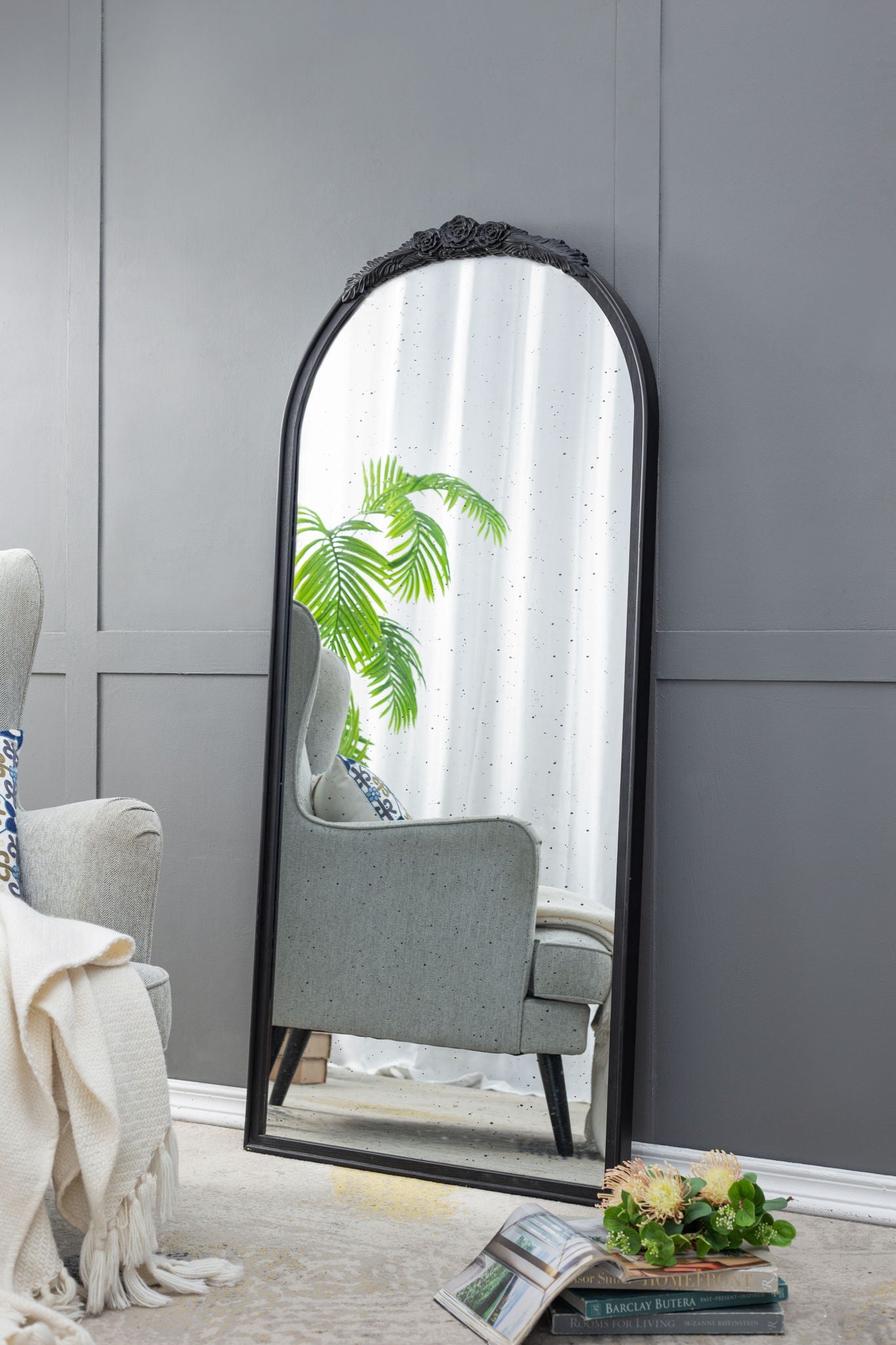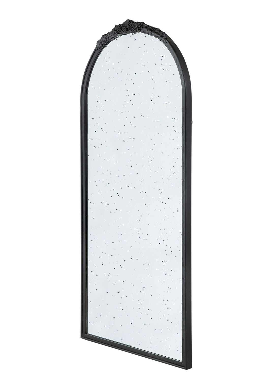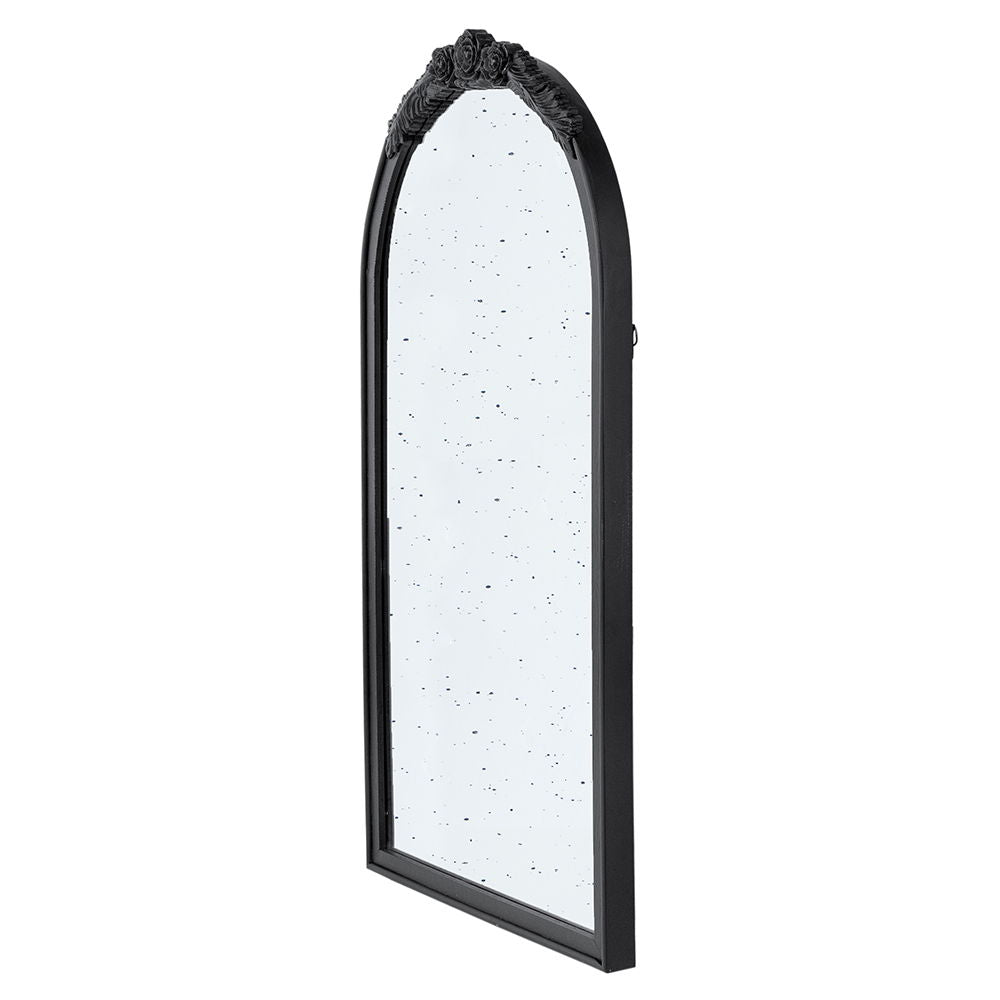 Hand Carved Rose Antique Mirror Frame, Large Arch Mirror Wall Decor For Living Room, Bathroom, Entryway - Black
