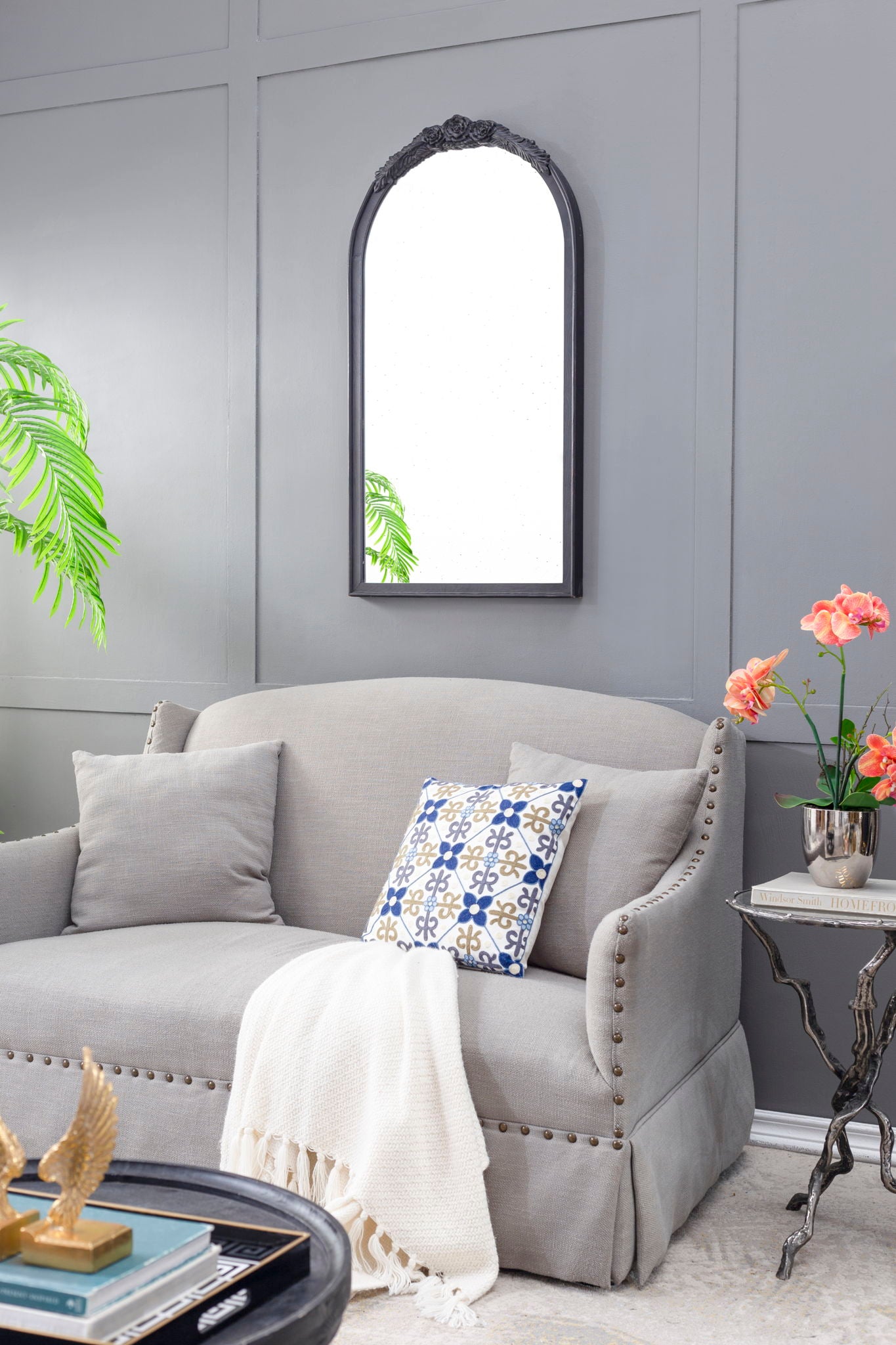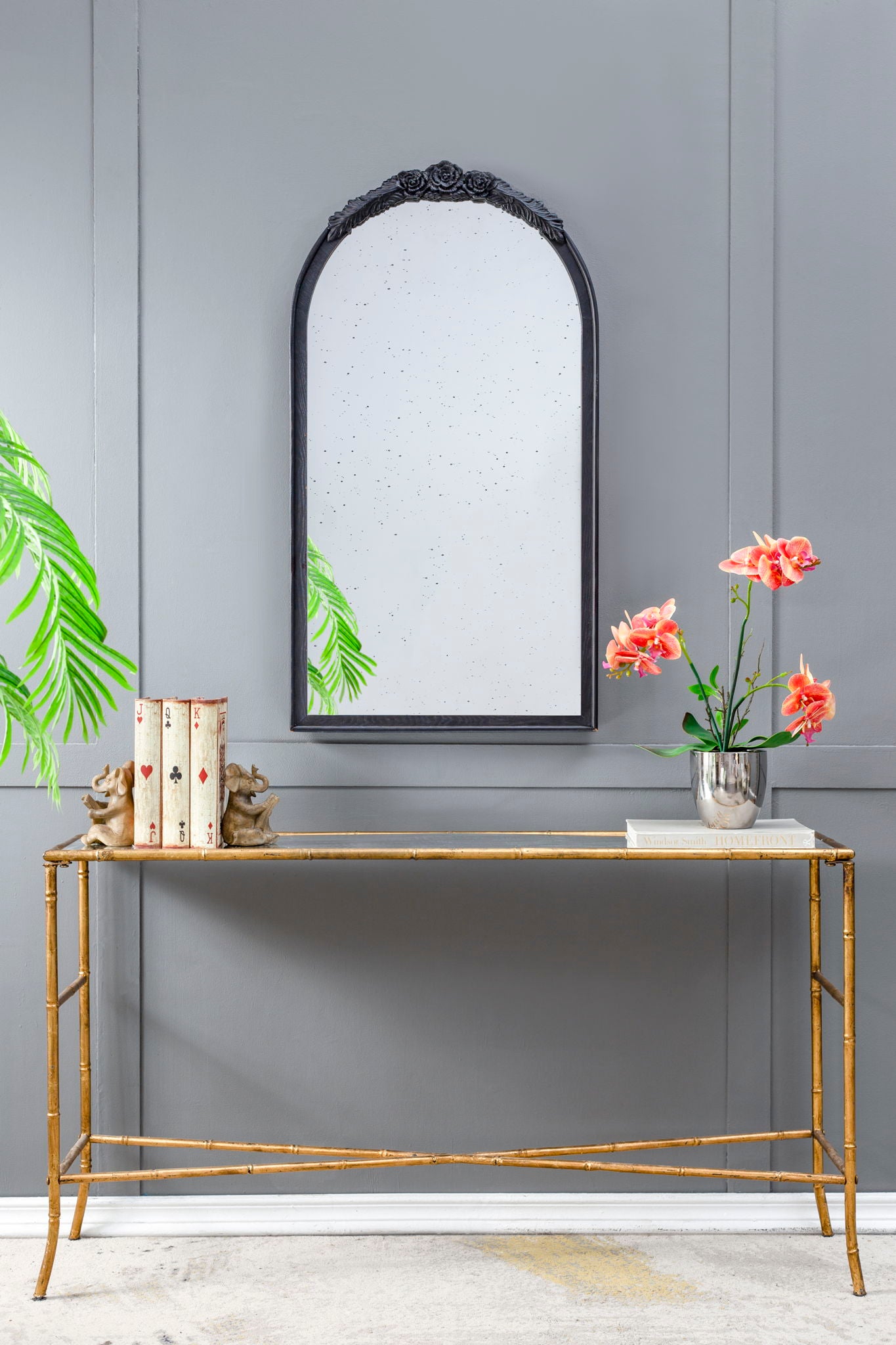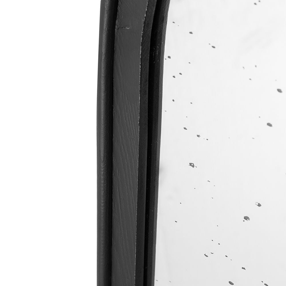 Hand Carved Rose Antique Mirror Frame, Large Arch Mirror Wall Decor For Living Room, Bathroom, Entryway - Black
