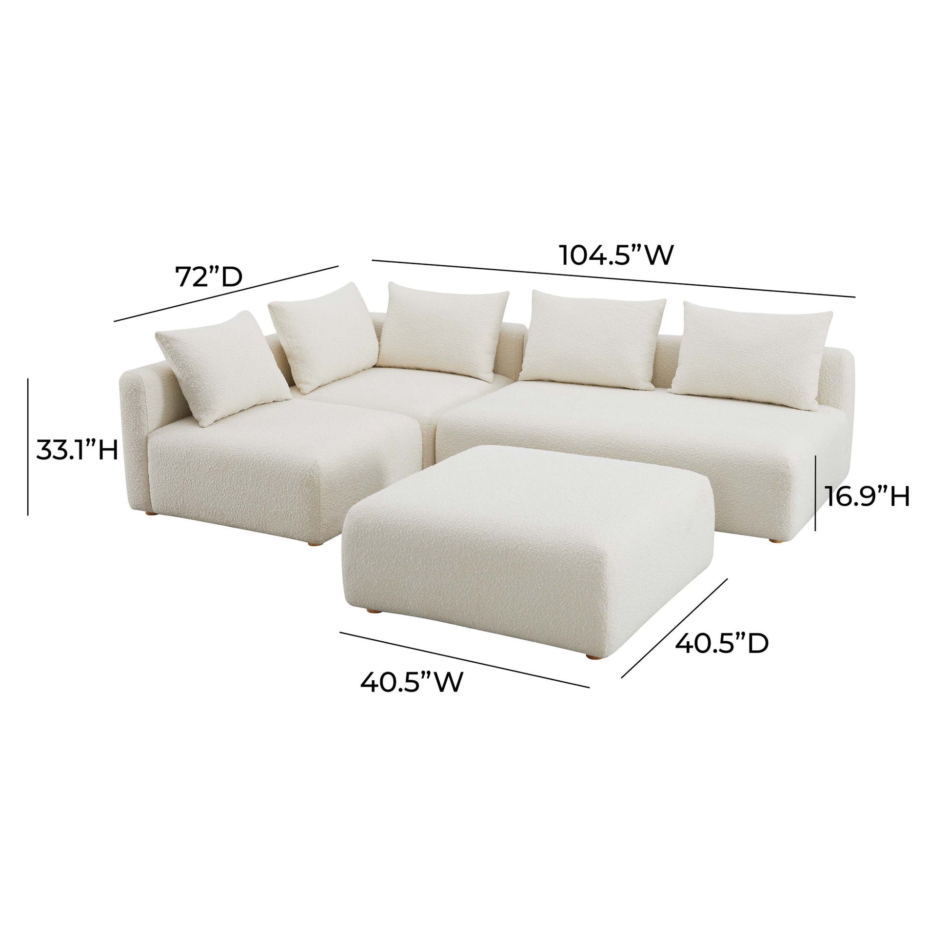 Hangover - 4-Piece Boucle Modular Chaise Sectional - Cream