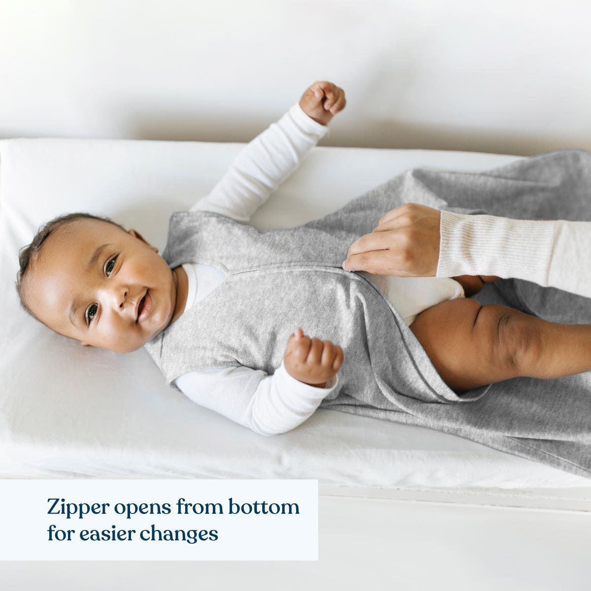 - Zipper opens from the bottom for easy diaper changes.