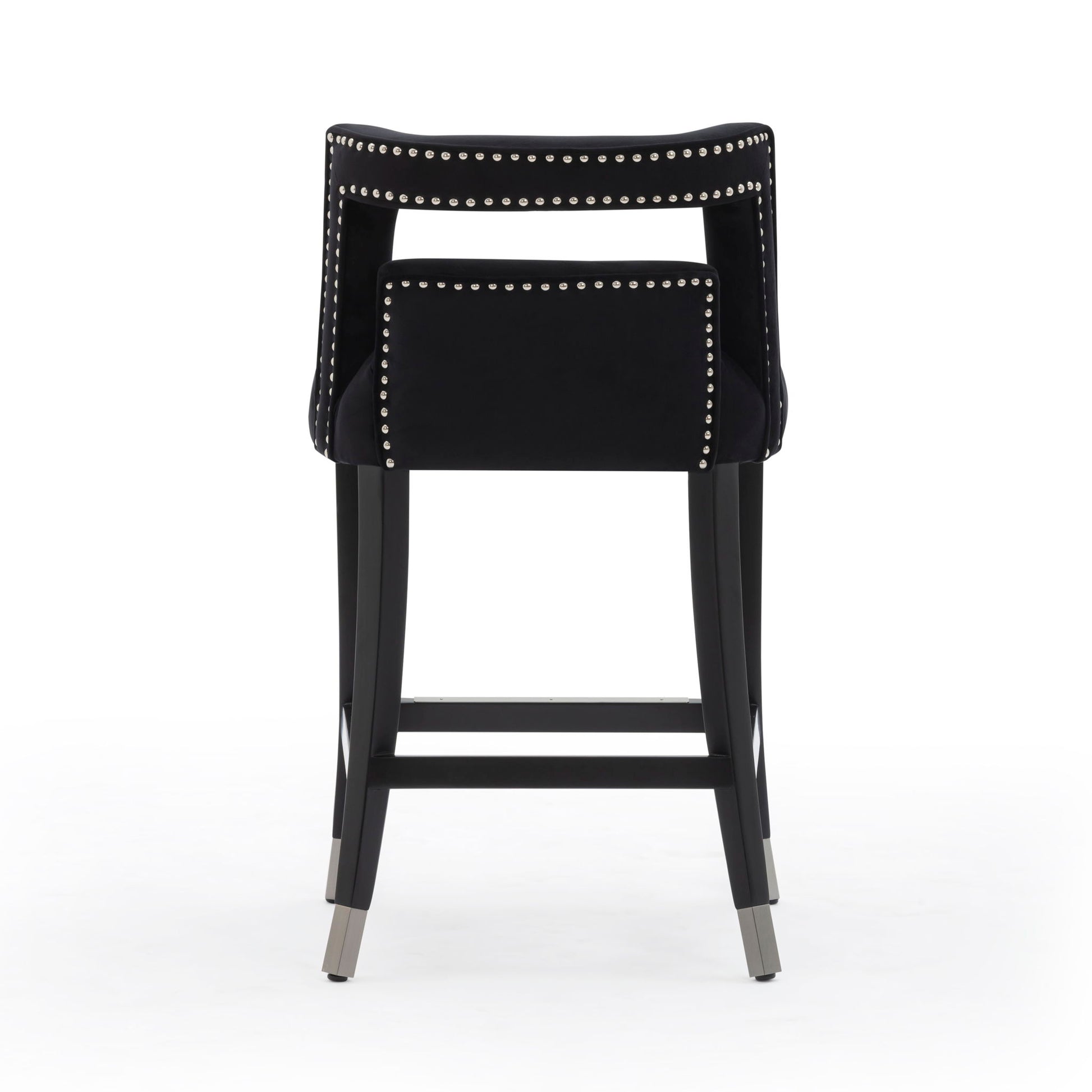 Not for the faint of heart, these stools will make you swoon. Making their debut with a bold statement, the Hart stool is available in bar and counter height options. Hand-applied nailheads and metal tipped legs match the accompanying footrest.