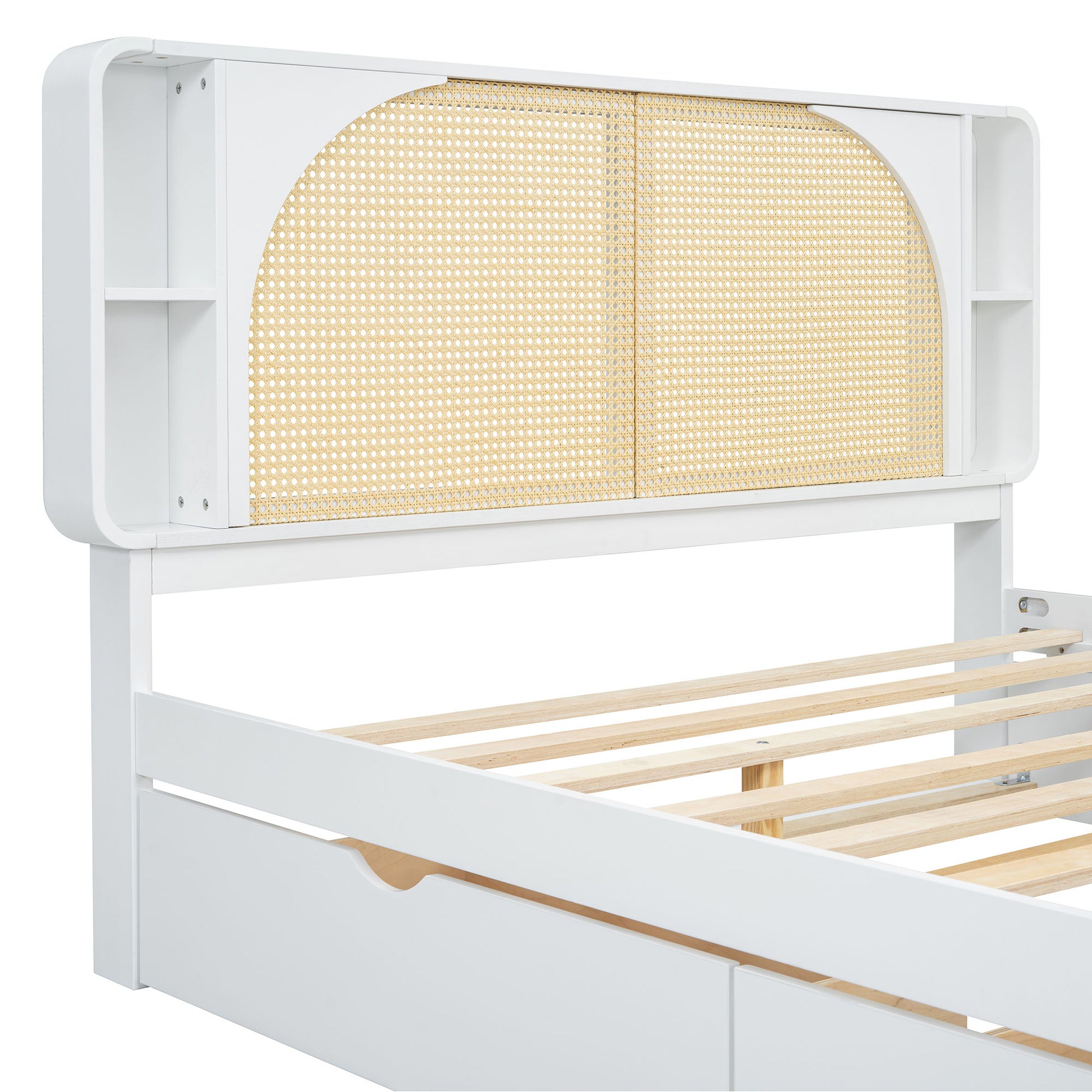High-Quality Design: This Rattan Headboard Bed combines the elegance of a rattan headboard with practical functionality, offering a perfect blend of modern and classic styles. The headboard features four storage compartments, ideal for keeping small items organized and your bedroom tidy.
