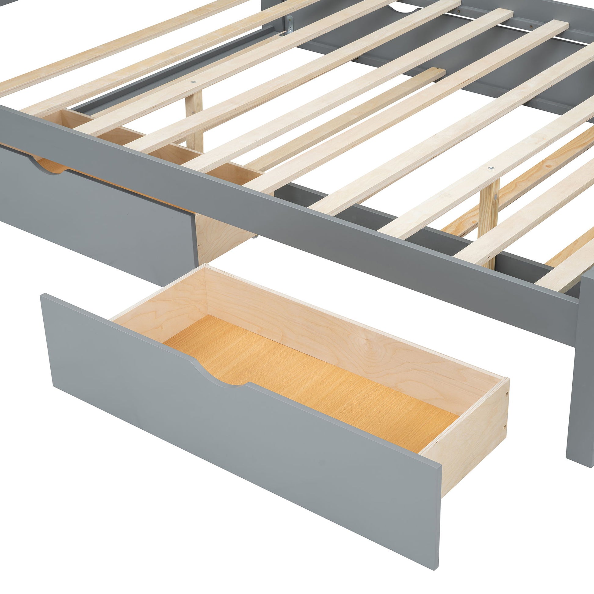 Queen Size Headboard Bed With 2 Drawers And Trundle - Gray