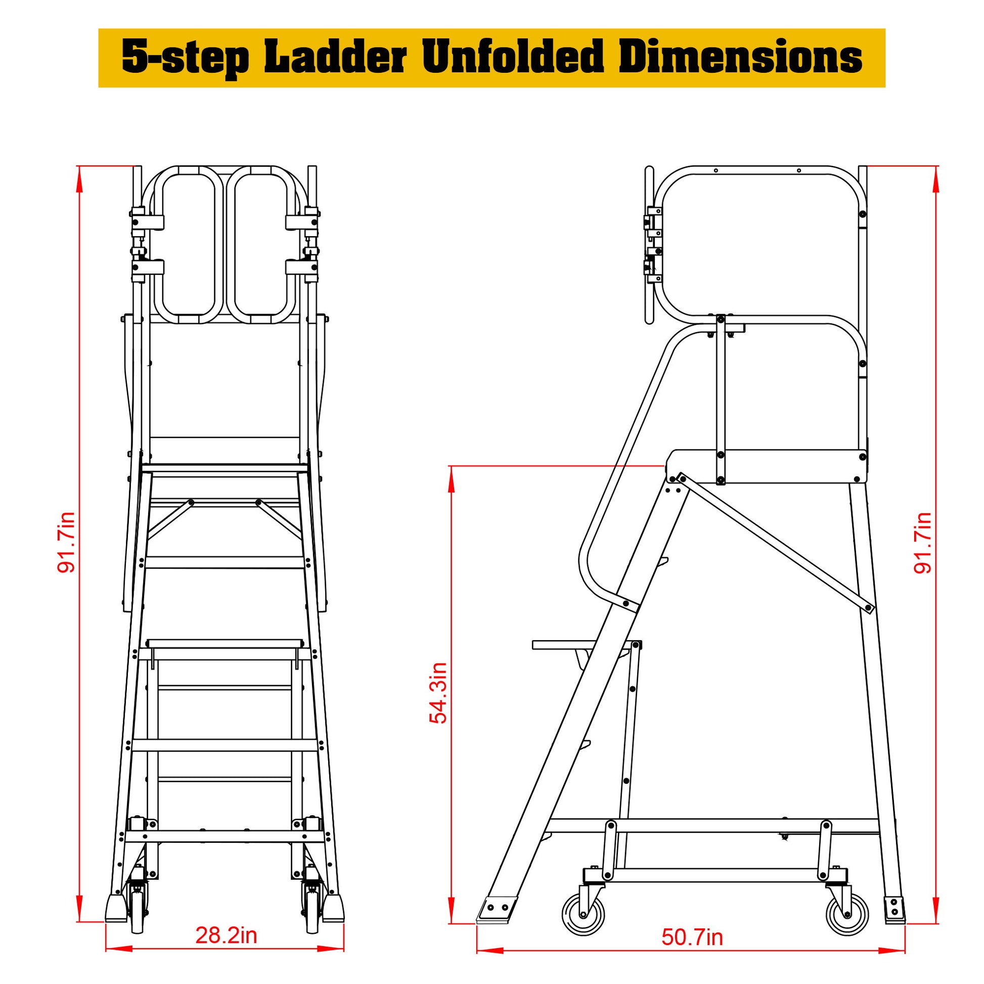 Heavy Duty Aluminum Rolling Platform Ladder With 5 Steps, 375Lbs Capacity - Silver