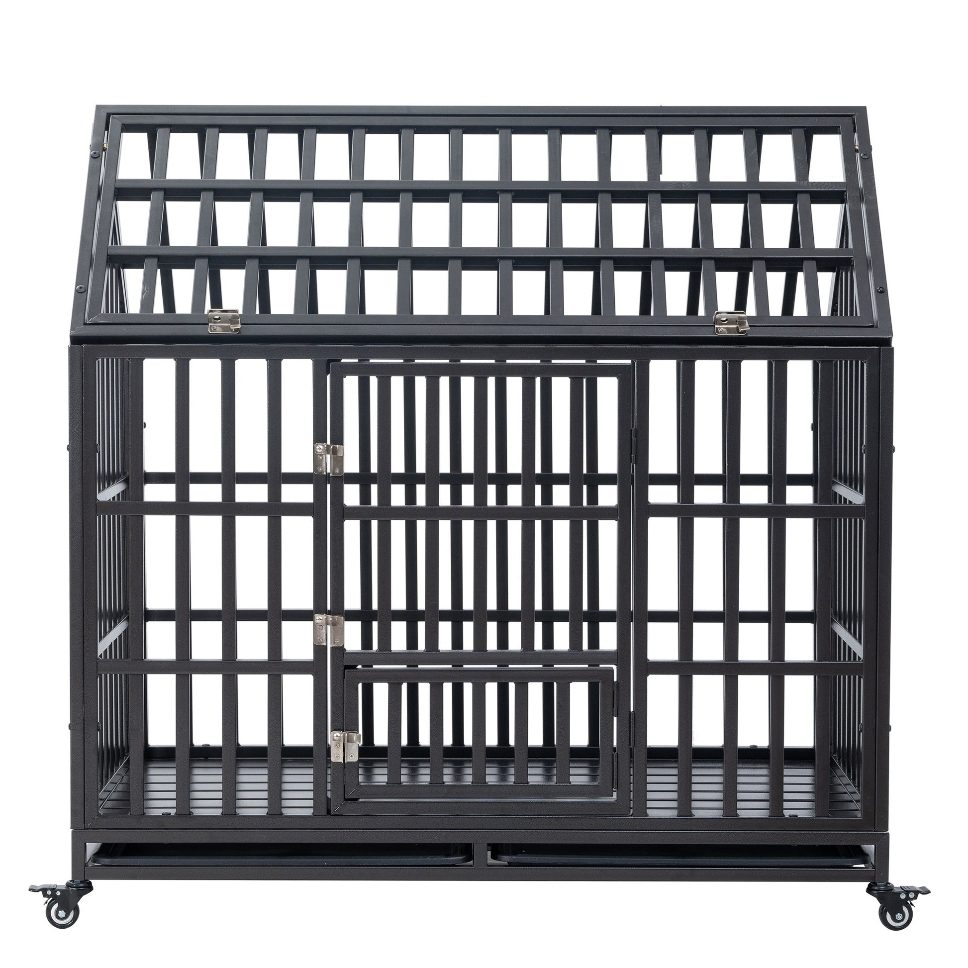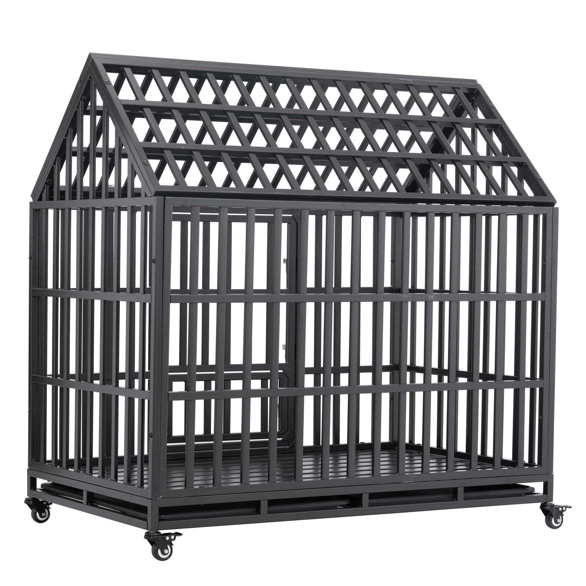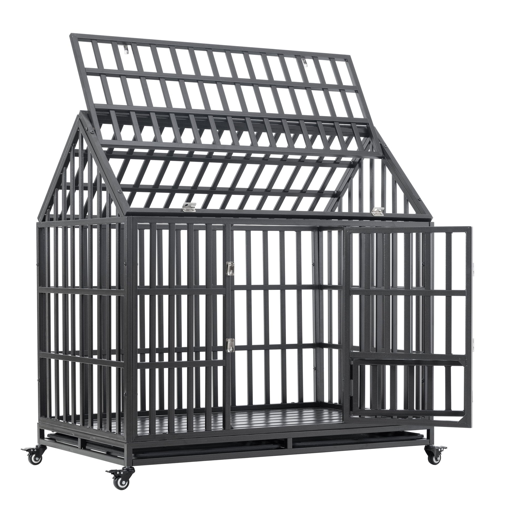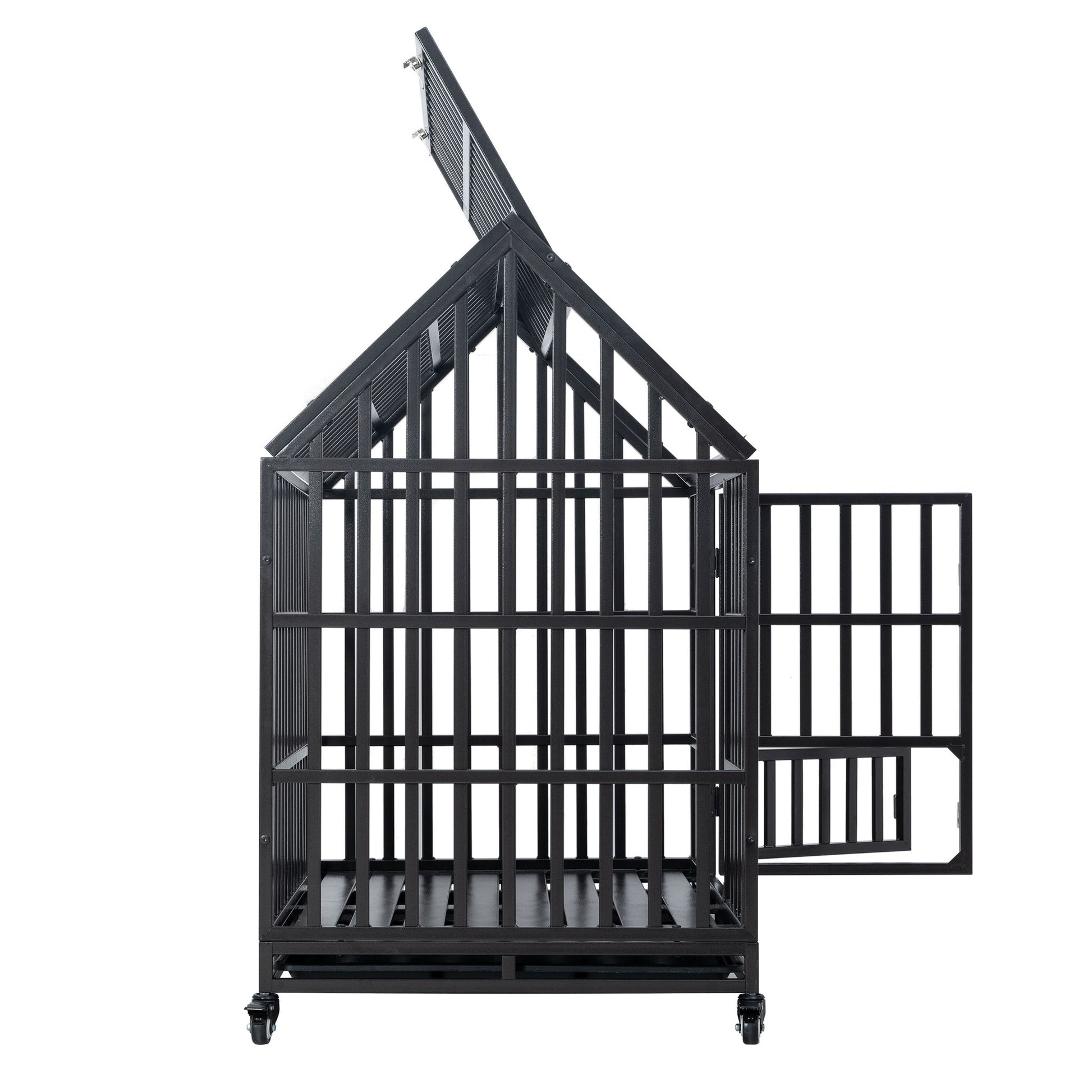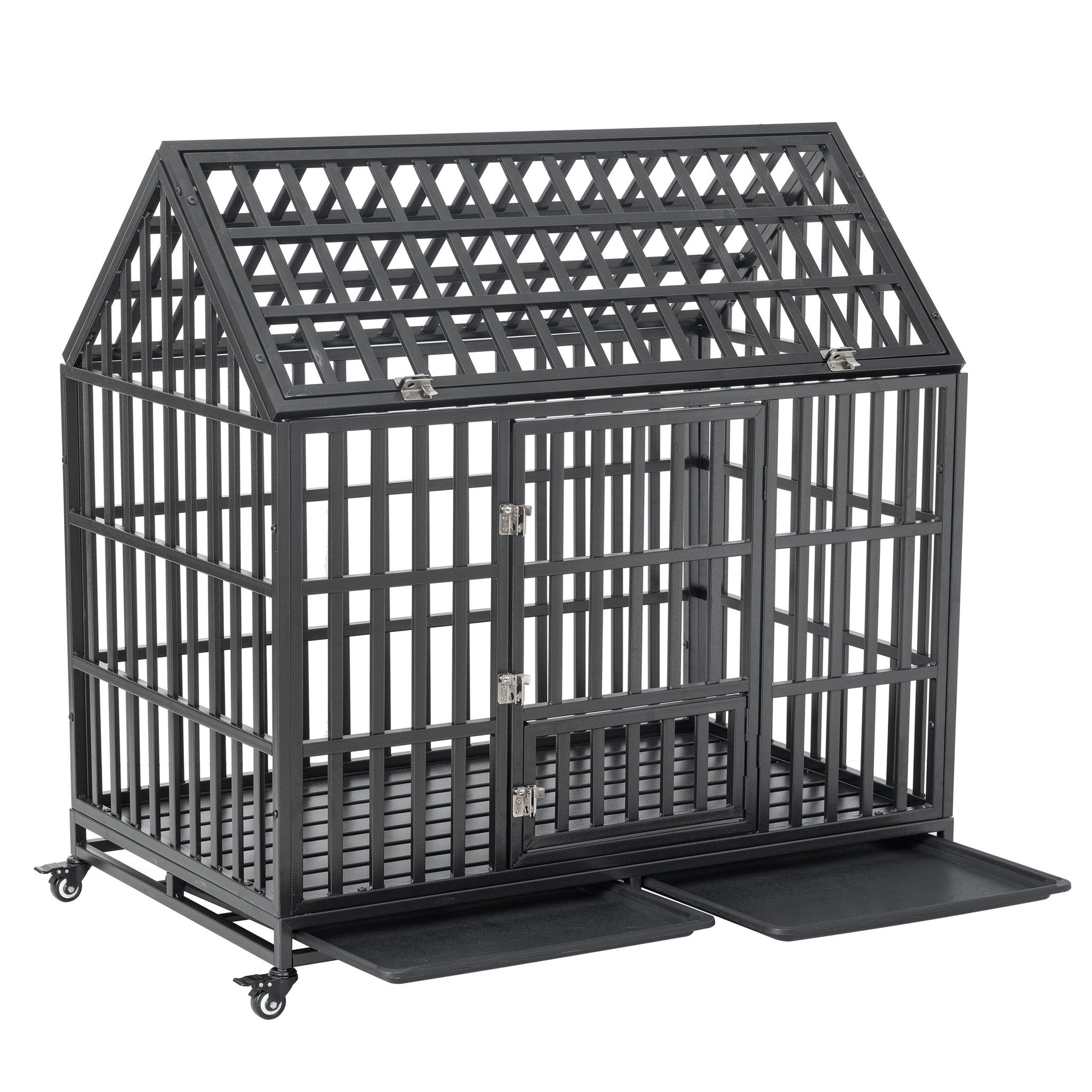 Heavy Duty Dog Cage Pet Crate With Roof & Window On Roof - Black