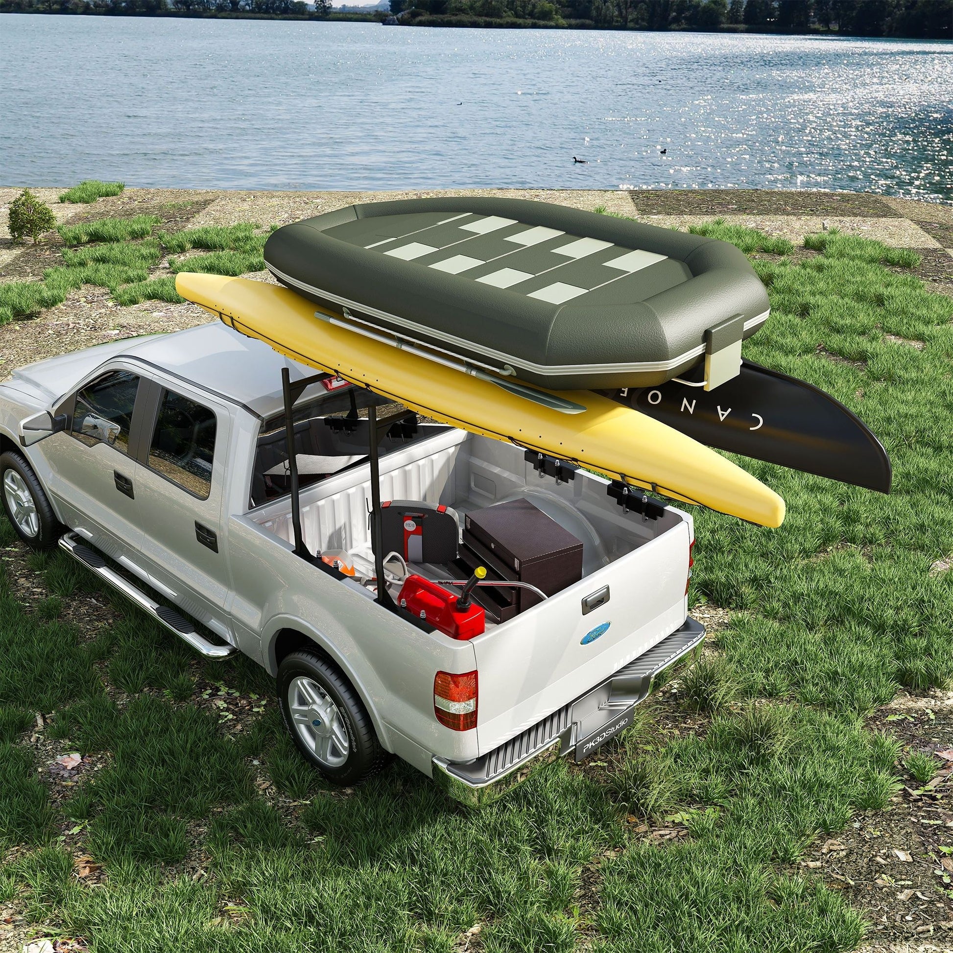Heavy Duty Universal Truck Bed Ladder Rack, No-Drill Installation, Adjustable - Black