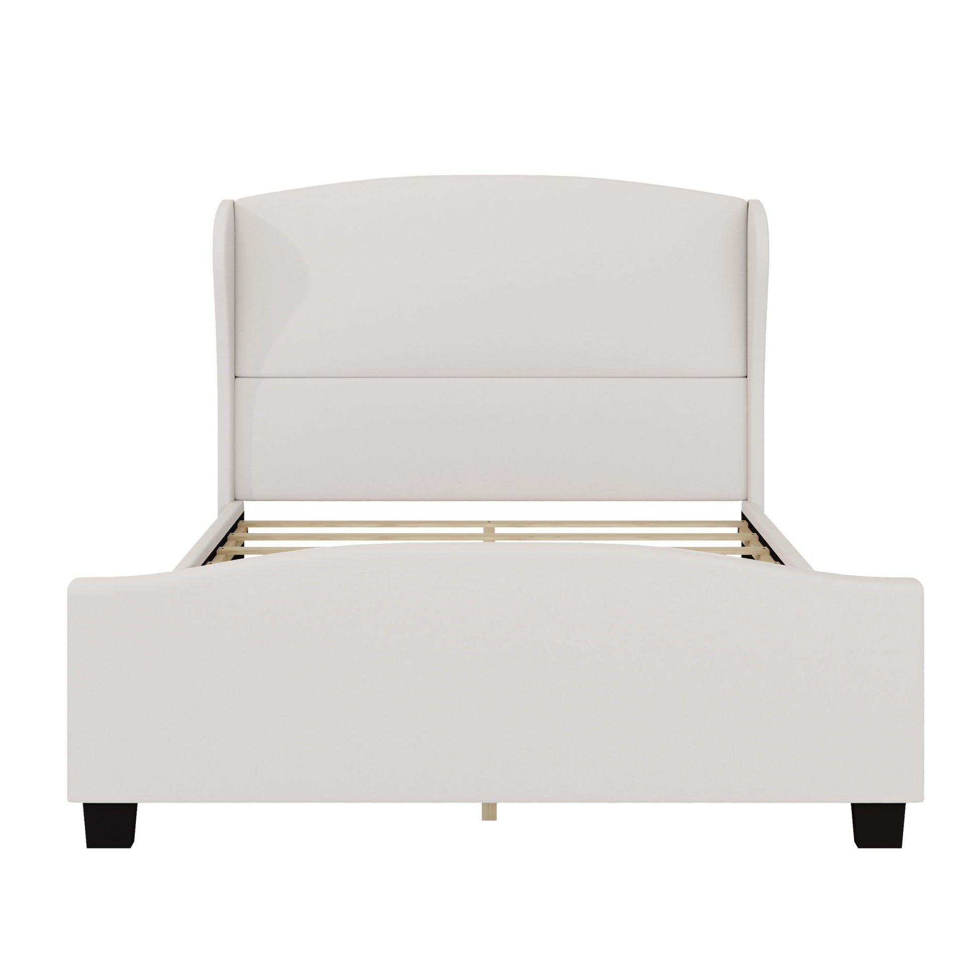 King Size High Headboard Wingback Linen Upholstered Bed No Box Spring - Beige