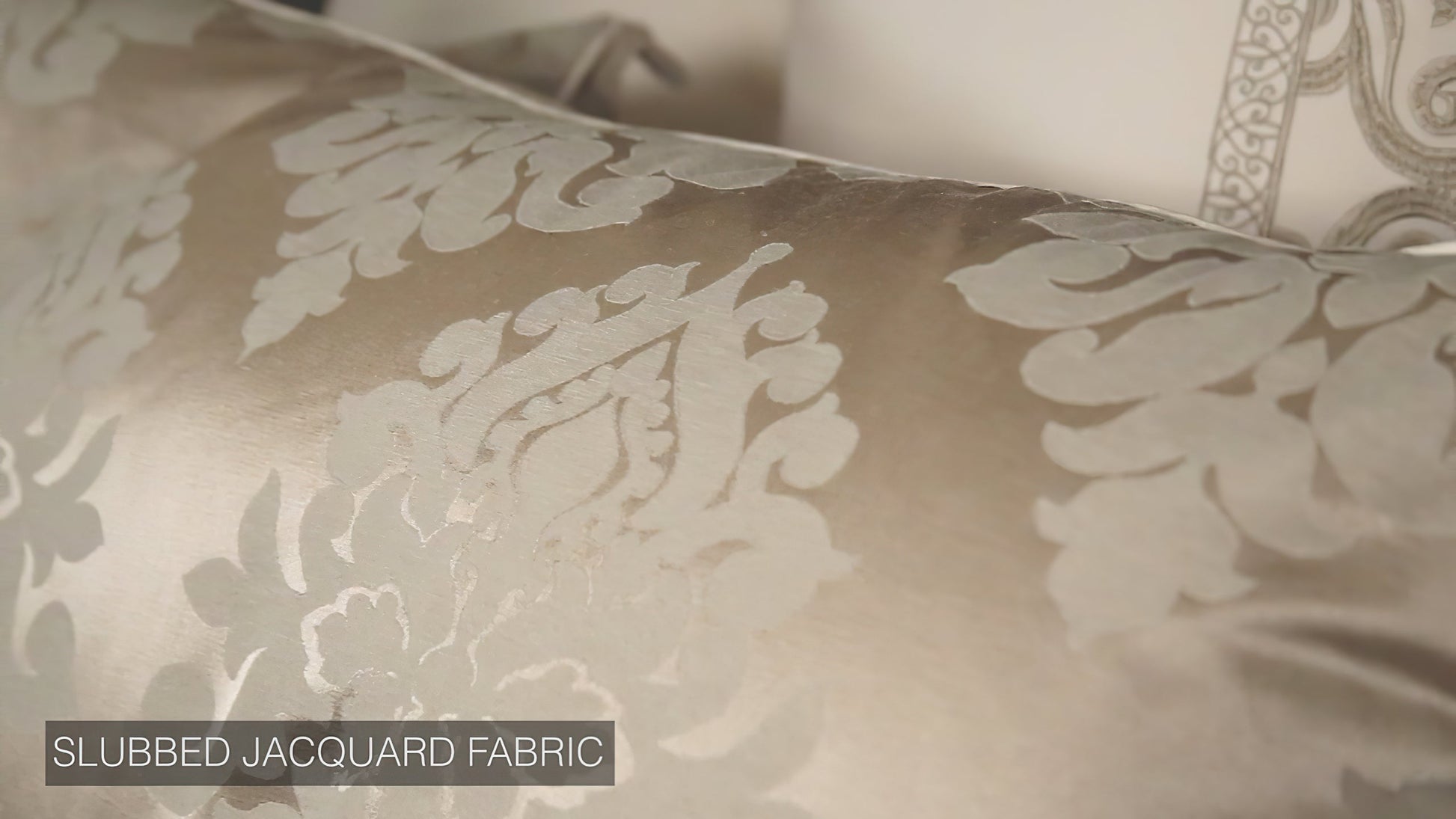 - Ivory damask-patterned woven jacquard fabric