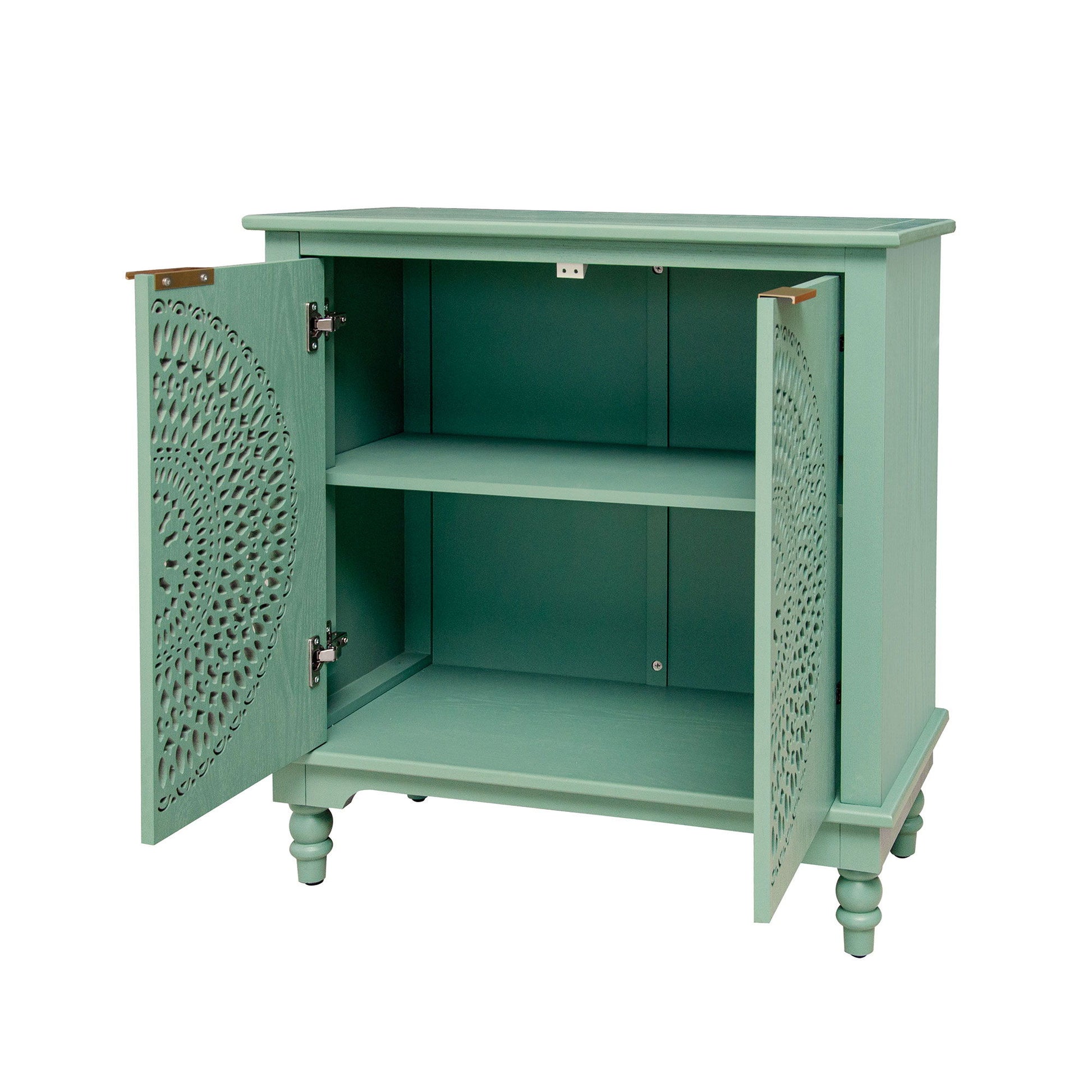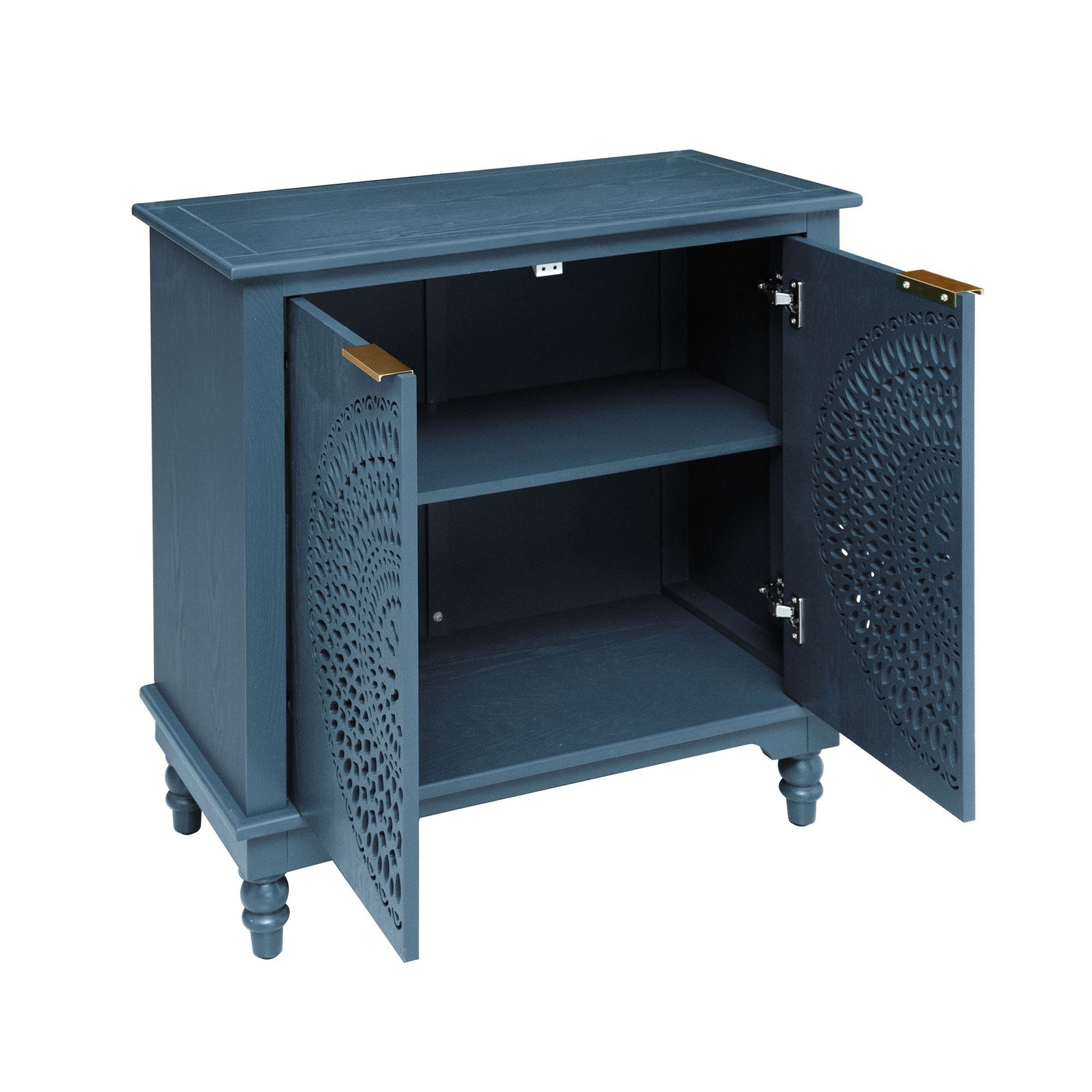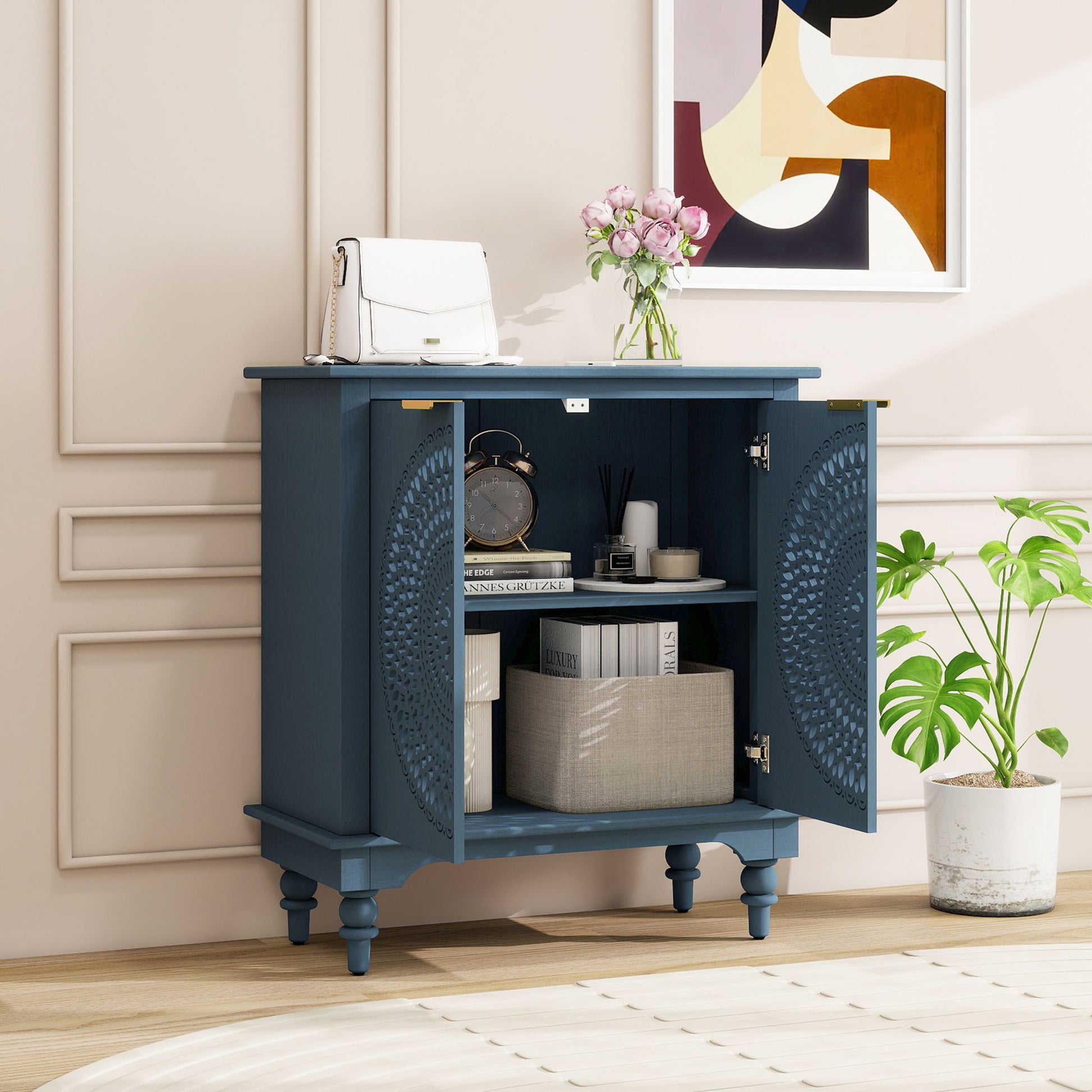Hollow - Carved 2 Doors Accent Cabinet Sideboard Buffet Storage Cabinet With Adjustable Shelf For Entryway, Living Room, Bedroom - Blue