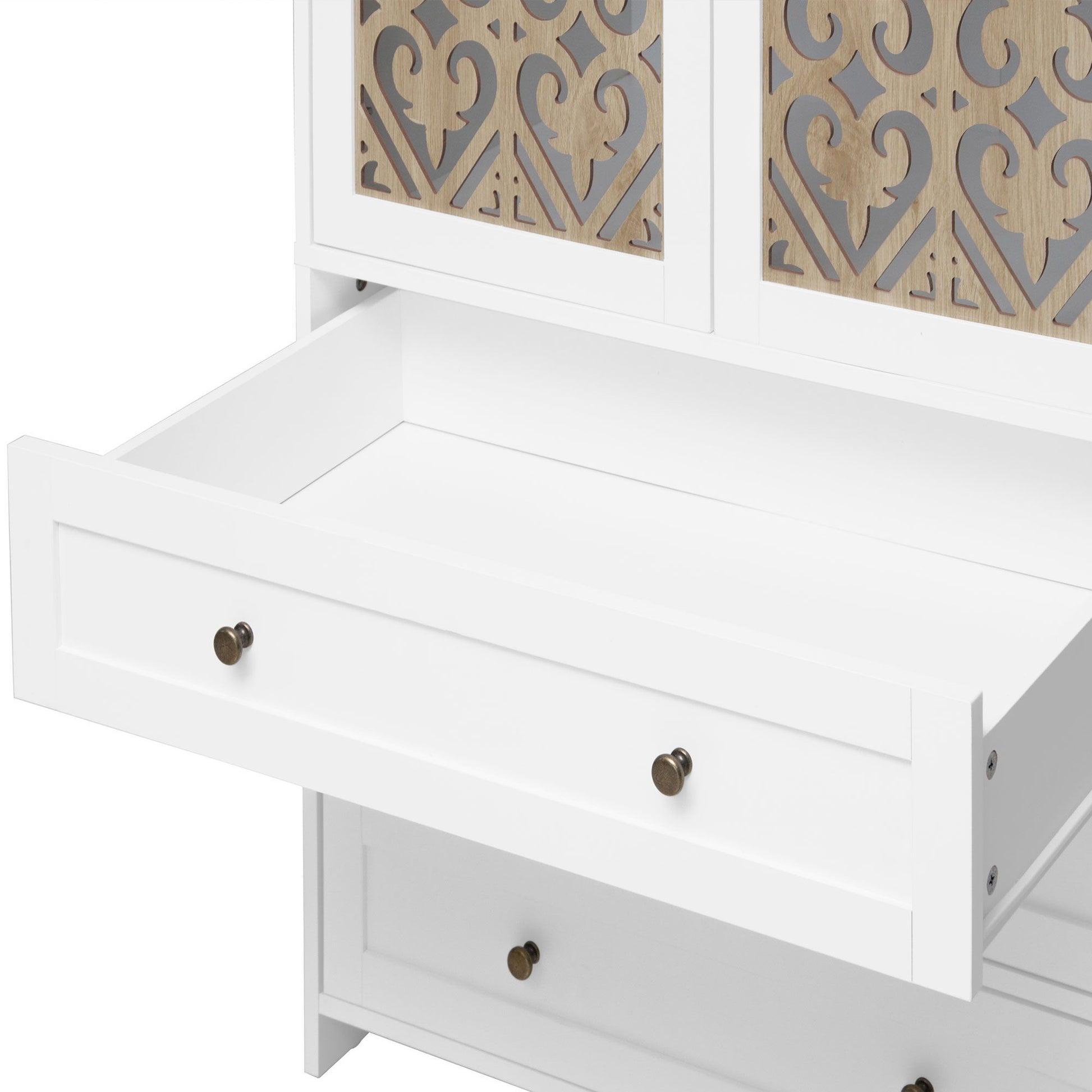 Hollow Pattern 2 Door 3 Drawer Wardrobe, The Collision Of Wood Color, Suitable For Bedrooms And Dressing Rooms - White
