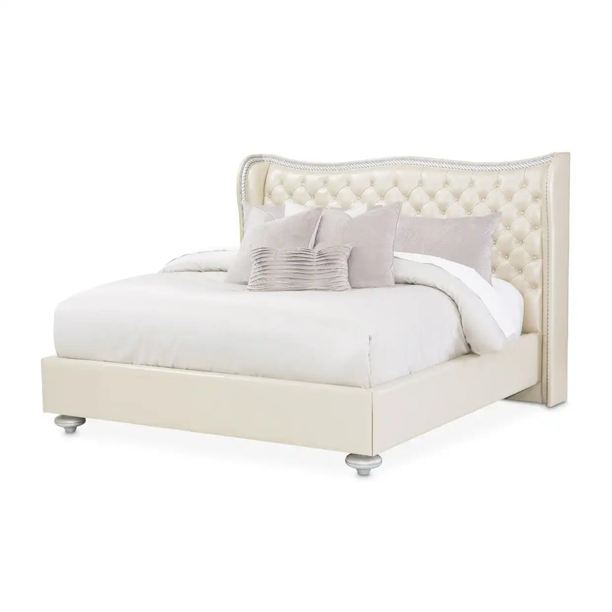Hollywood Swank - East King Upholstered Bed - Creamy Pearl