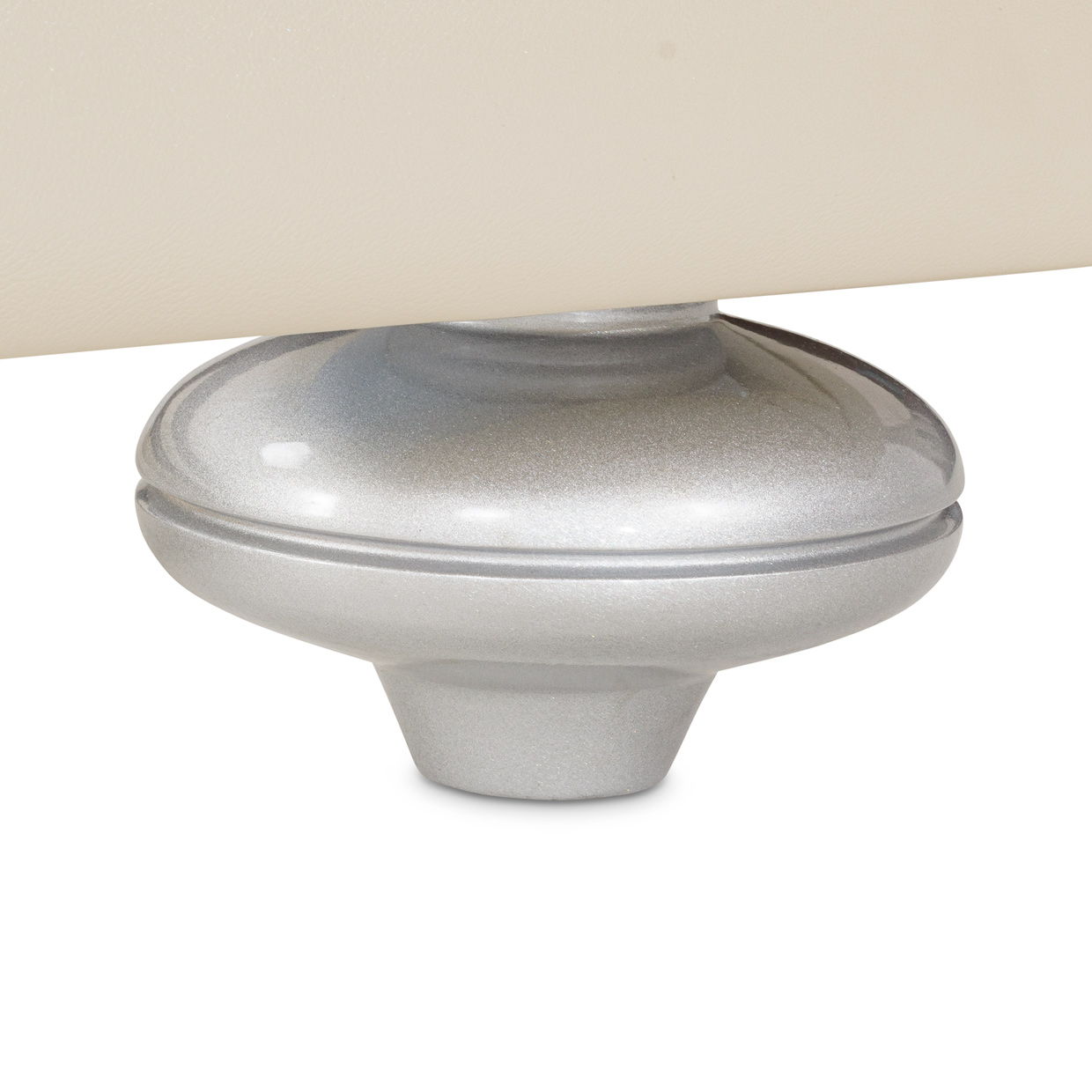 Lavish your bedroom décor in glamor and glitz with the addition of this stunning platform bed. This bed carries Creamy Pearl upholstery and features a padded headboard with a gentle arch. You’re bound to be pleased with this upholstered bed in your home décor. This bed is available in queen, king and California king sizes.