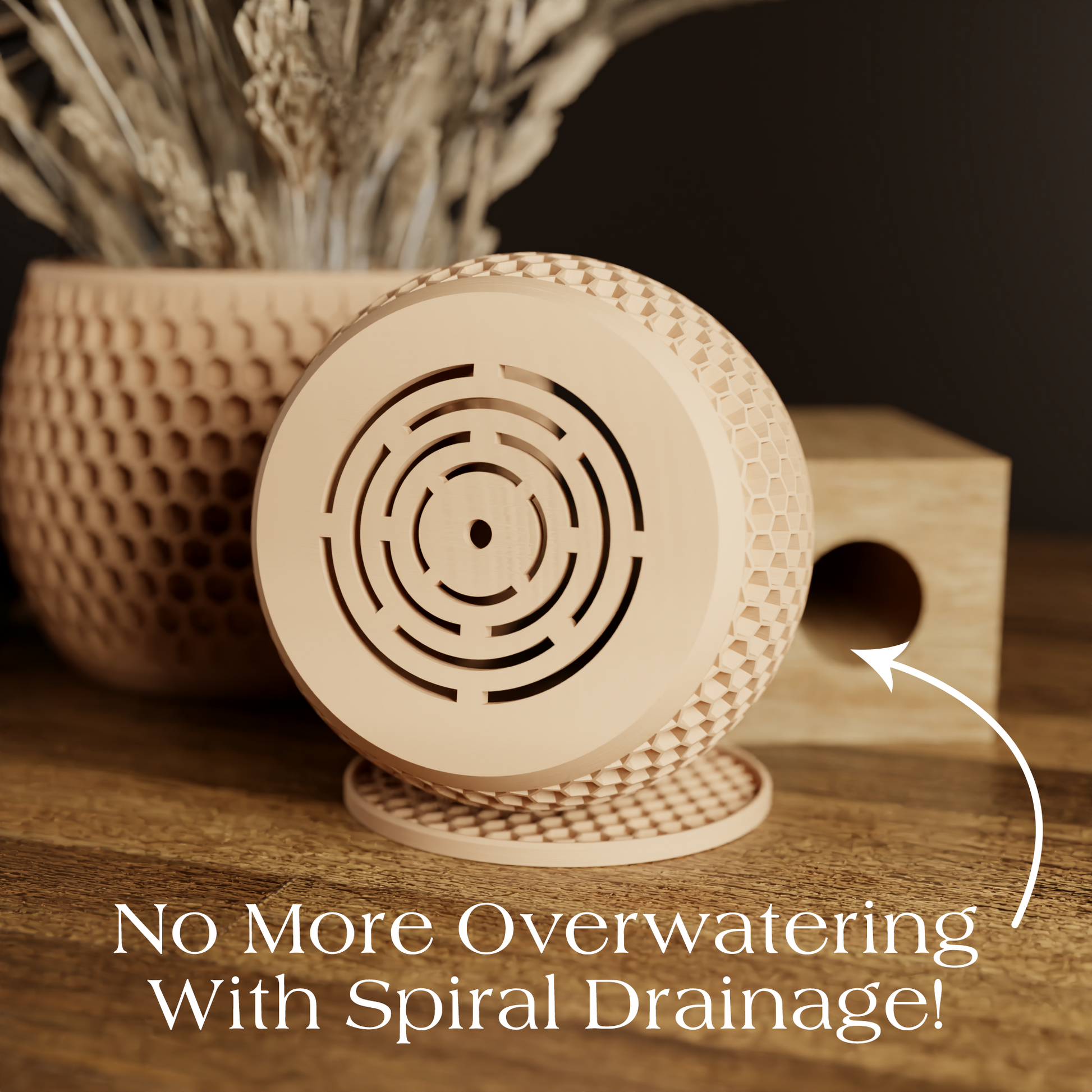 We created the HONEYCOMB planter to showcase the elegance and structural beauty found in nature’s designs, particularly the honeycomb's geometric precision. Its intricate hexagonal texture adds a layer of sophistication and visual intrigue, making it a striking yet refined home for your plants. The drip tray/saucer is custom-fitted and designed to perfectly complement the planter.