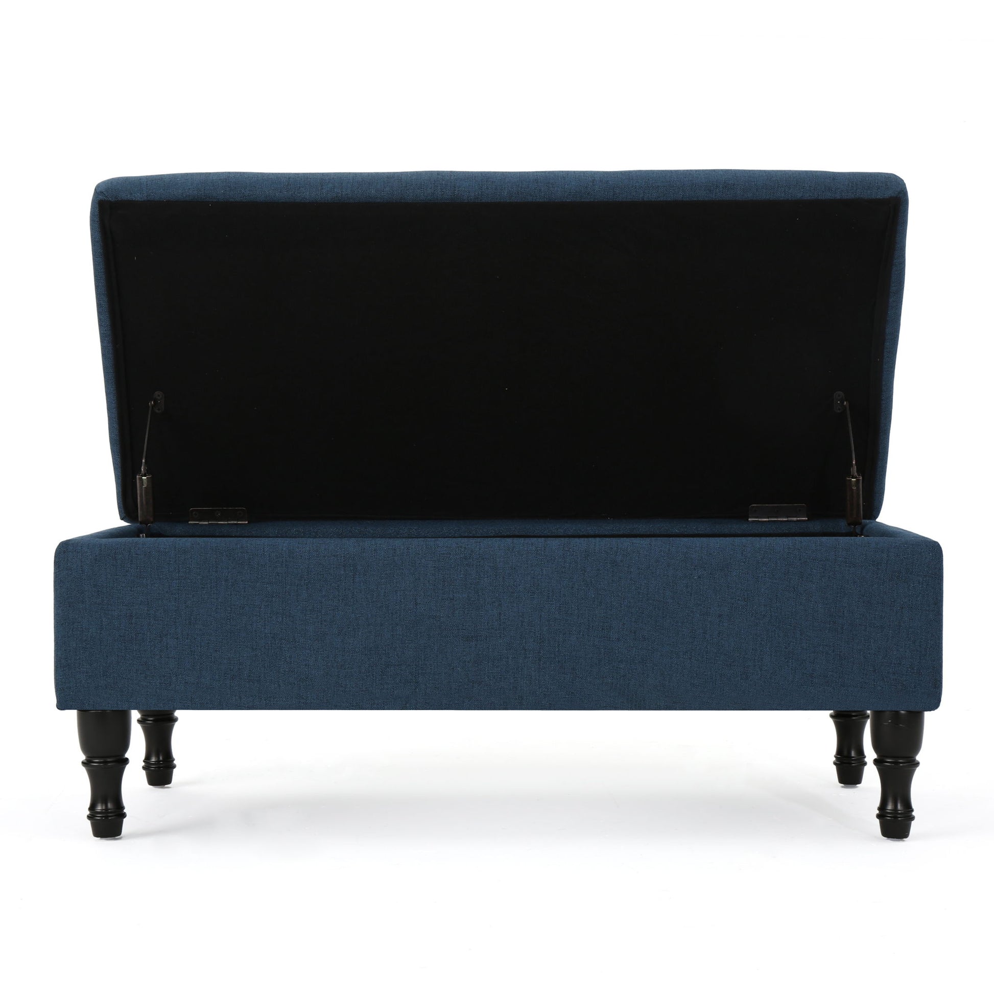Hyatt - Suede Storage Ottoman With Tufted Top And Dark Wooden Legs - Navy Blue