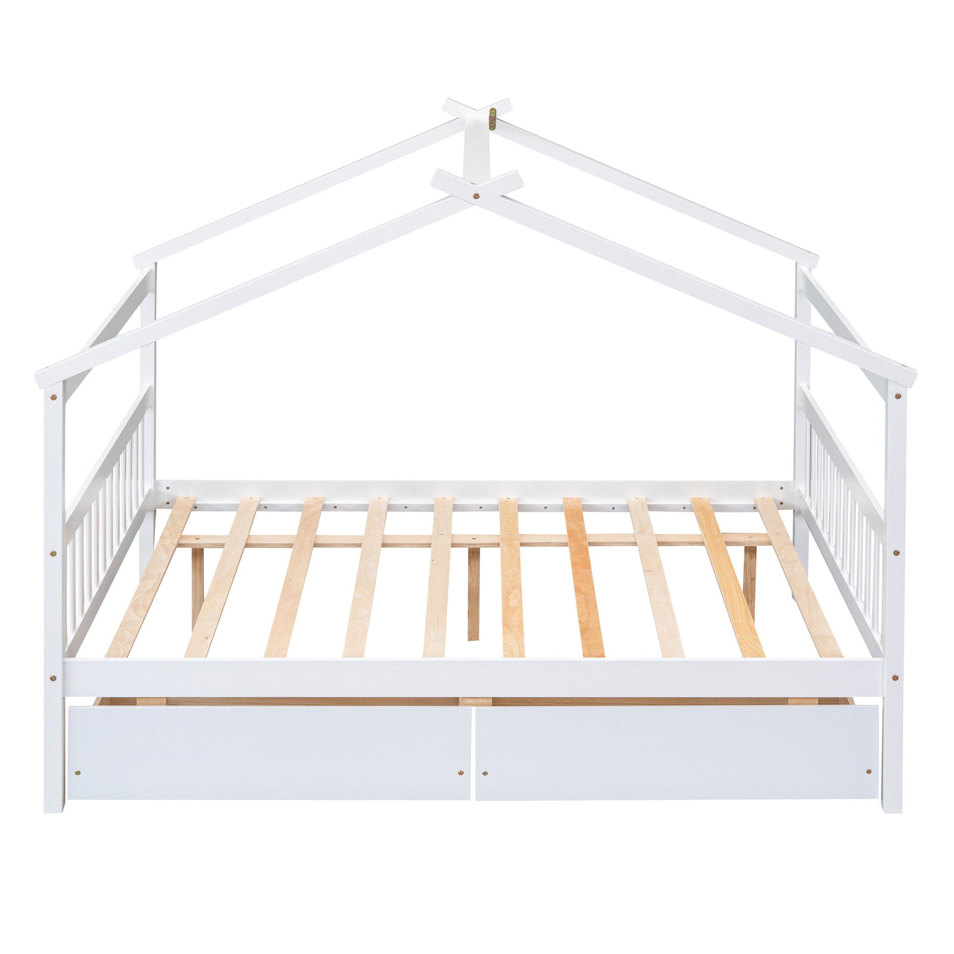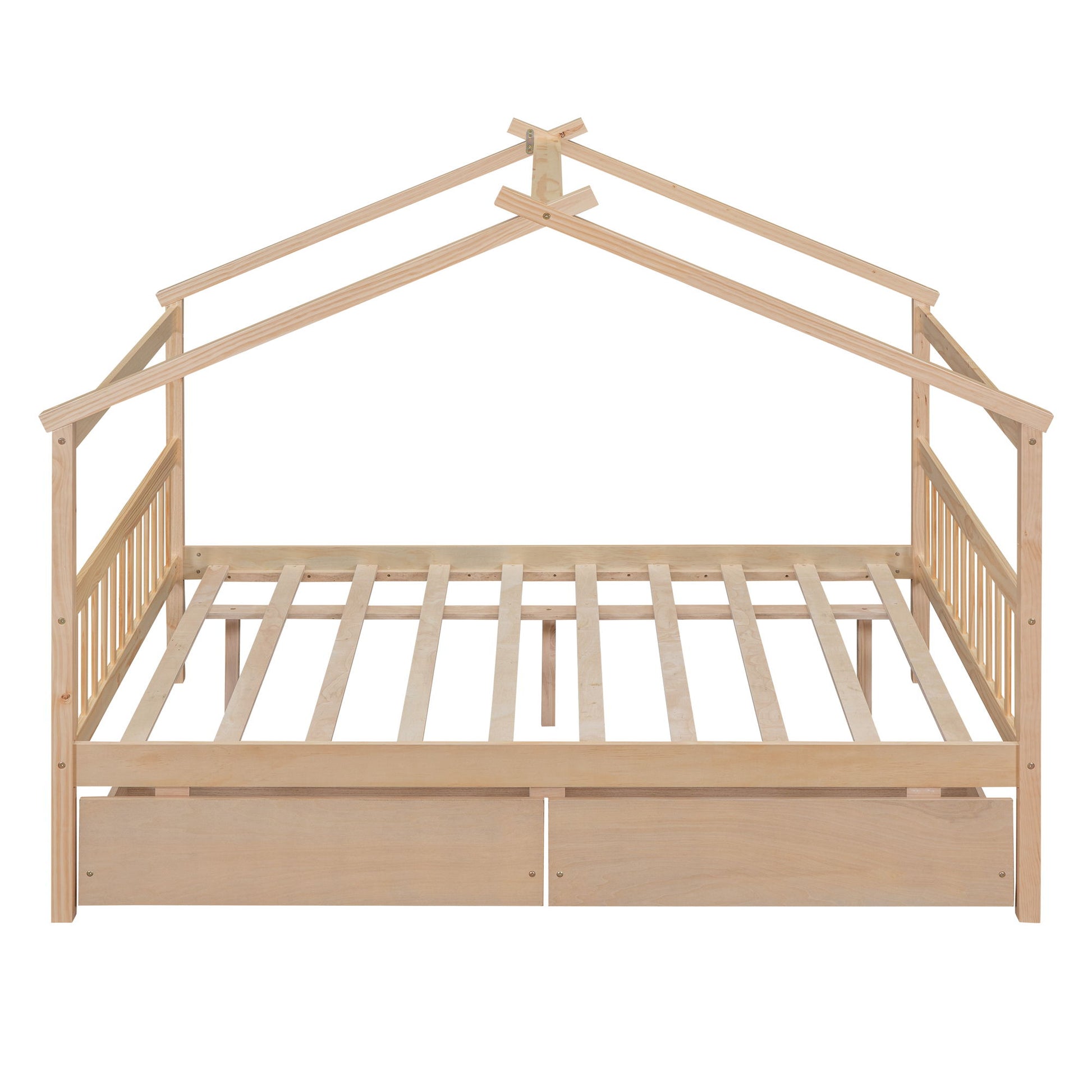Full Size Classic House Bed With Twin Size Trundle - Natural