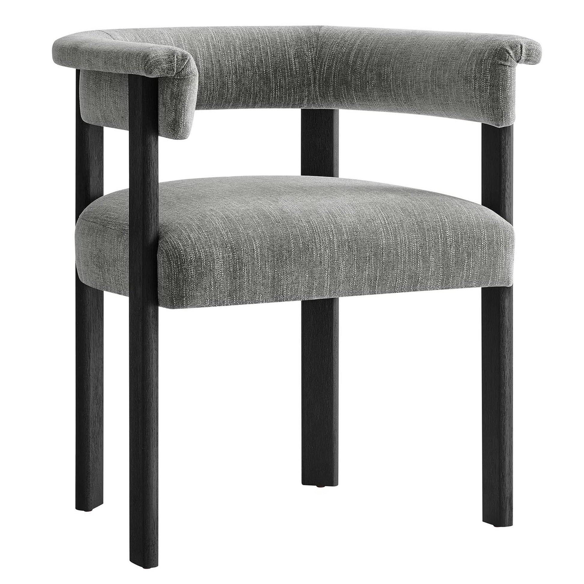 Feel the exquisite combination of modern chic and ultimate comfort with the Imogen Fabric Dining Chair Set of 2. These contemporary dining chairs feature a unique barrel back silhouette that cradles you in luxury with its curved backrest and open design, offering both support and style. The foundation of each dining room armchair is built on sturdy wood legs, for durability and strength to accompany its aesthetic appeal. The seats and backrests, constructed from high-quality plywood, are enveloped in a dense layer of foam and fabric upholstery, creating an inviting look that beckons you to sit and relax well after you've finished eating. The fixed seat and cushion design provide a seamless, clean look that complements any dining table with grace. These curved back dining chairs are equipped with non-marking plastic foot pins, protecting your flooring. Perfectly suited as an accent chair or part of your kitchen & dining room ensemble, this set of two rounded back dining chairs seamlessly integrates with a variety of decor themes, from modern farmhouse to contemporary and minimalist aesthetics. Easy to assemble and designed with the modern home in mind, the Imogen barrel chair set is not only a practical addition to your home but also a reflection of sophisticated taste. Dining Side Chair Weight Capacity: 331 lbs