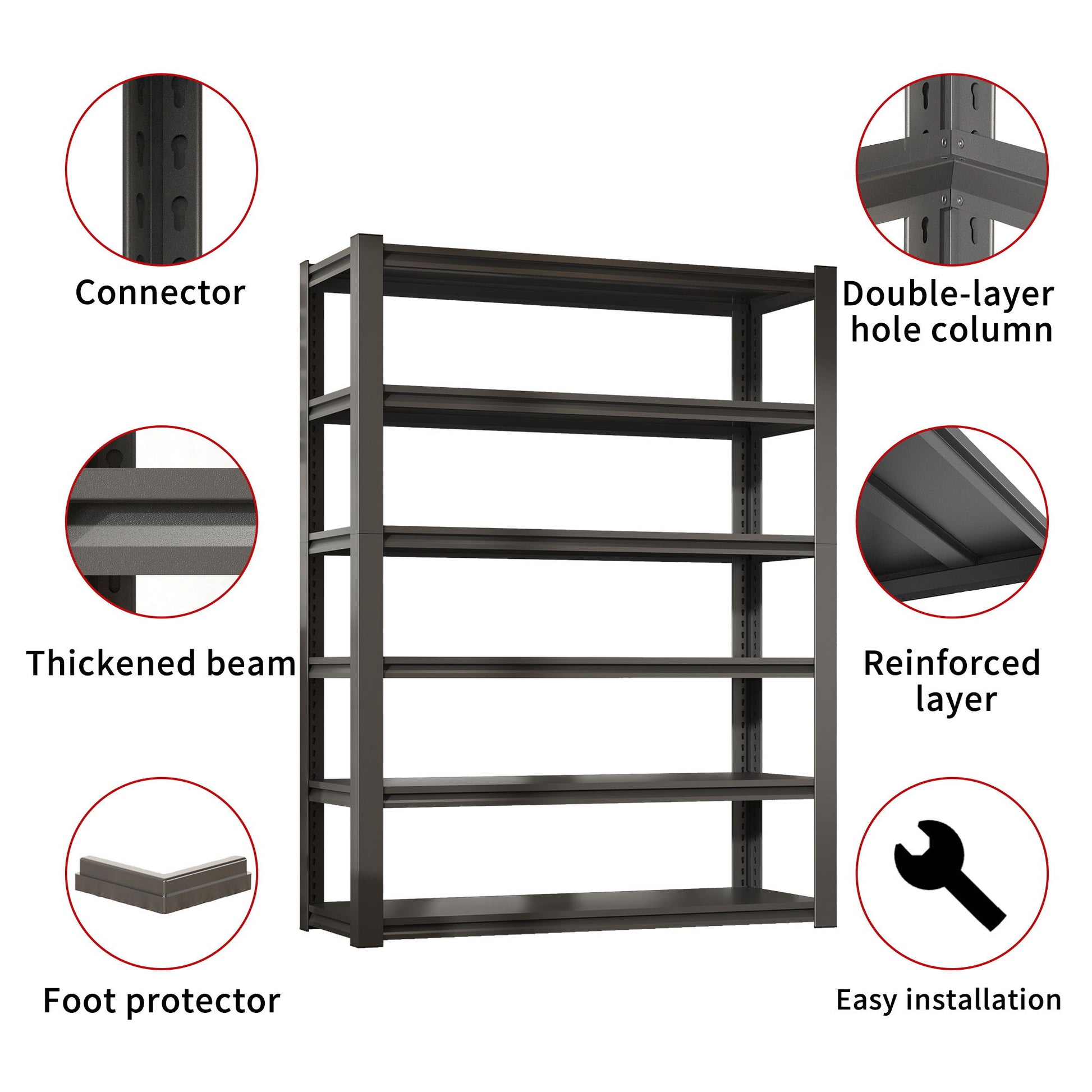 - 2000LBS Capacity: Each solid thickened metal shelf can hold up to 400 lbs, ensuring stability and durability.