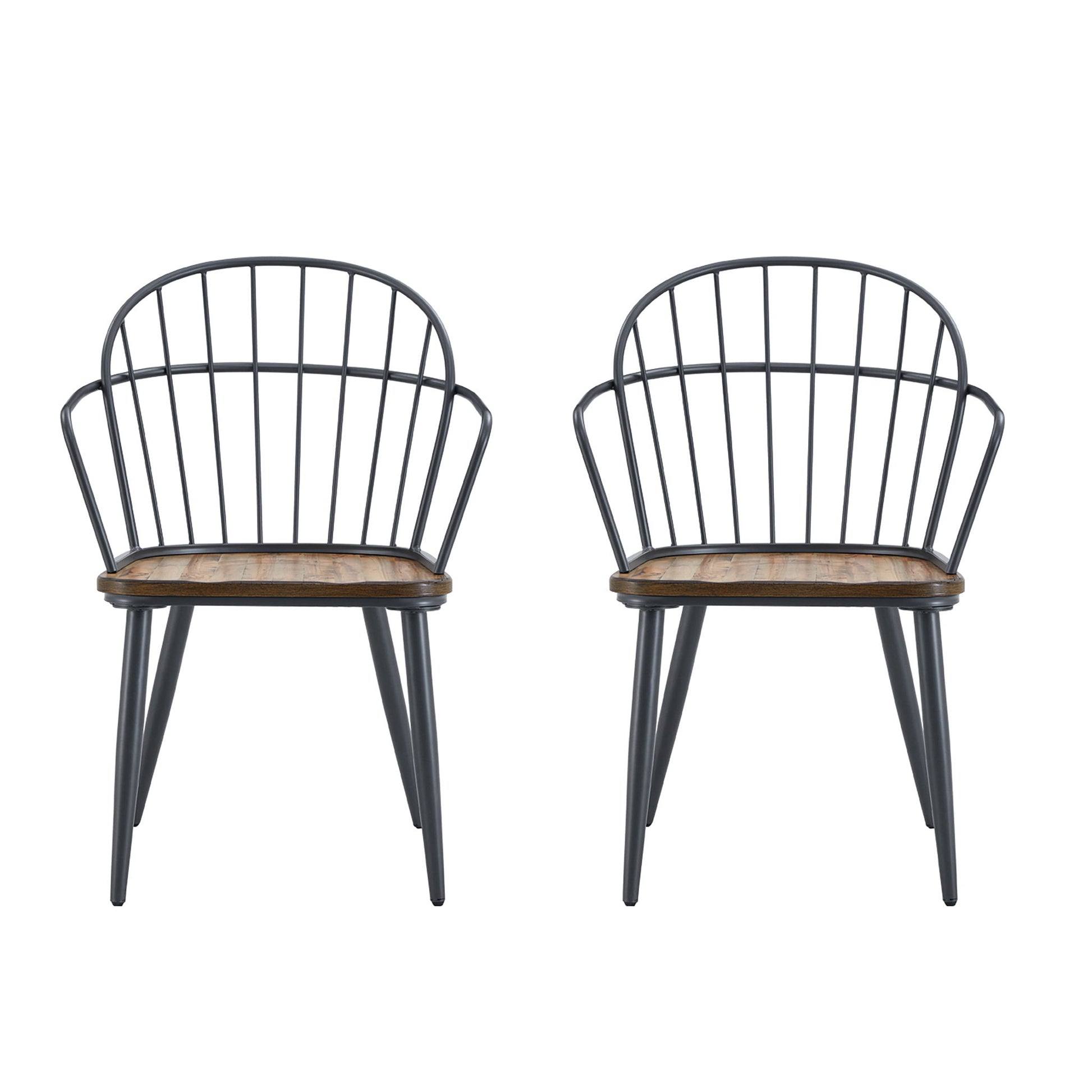 Industrial Inspired Indoor Dining Chair With Metal Legs And Birch (Set of 2) - Black / Natural