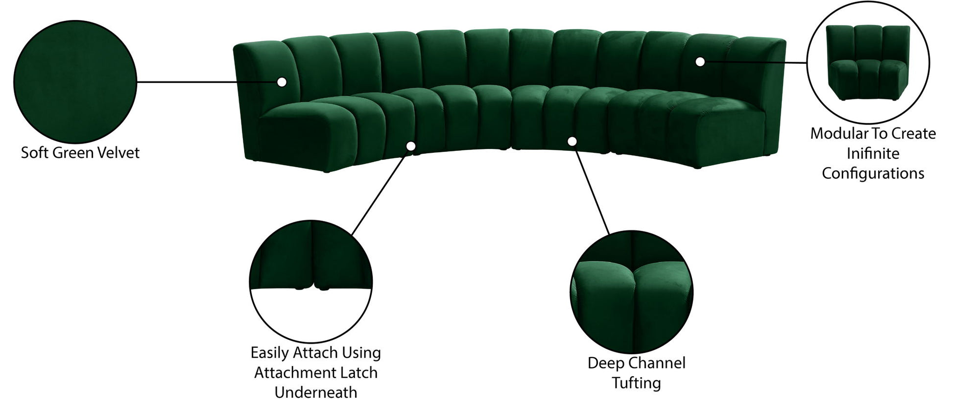 Infinity - 4 Piece Fabric Modular Sectional - Green