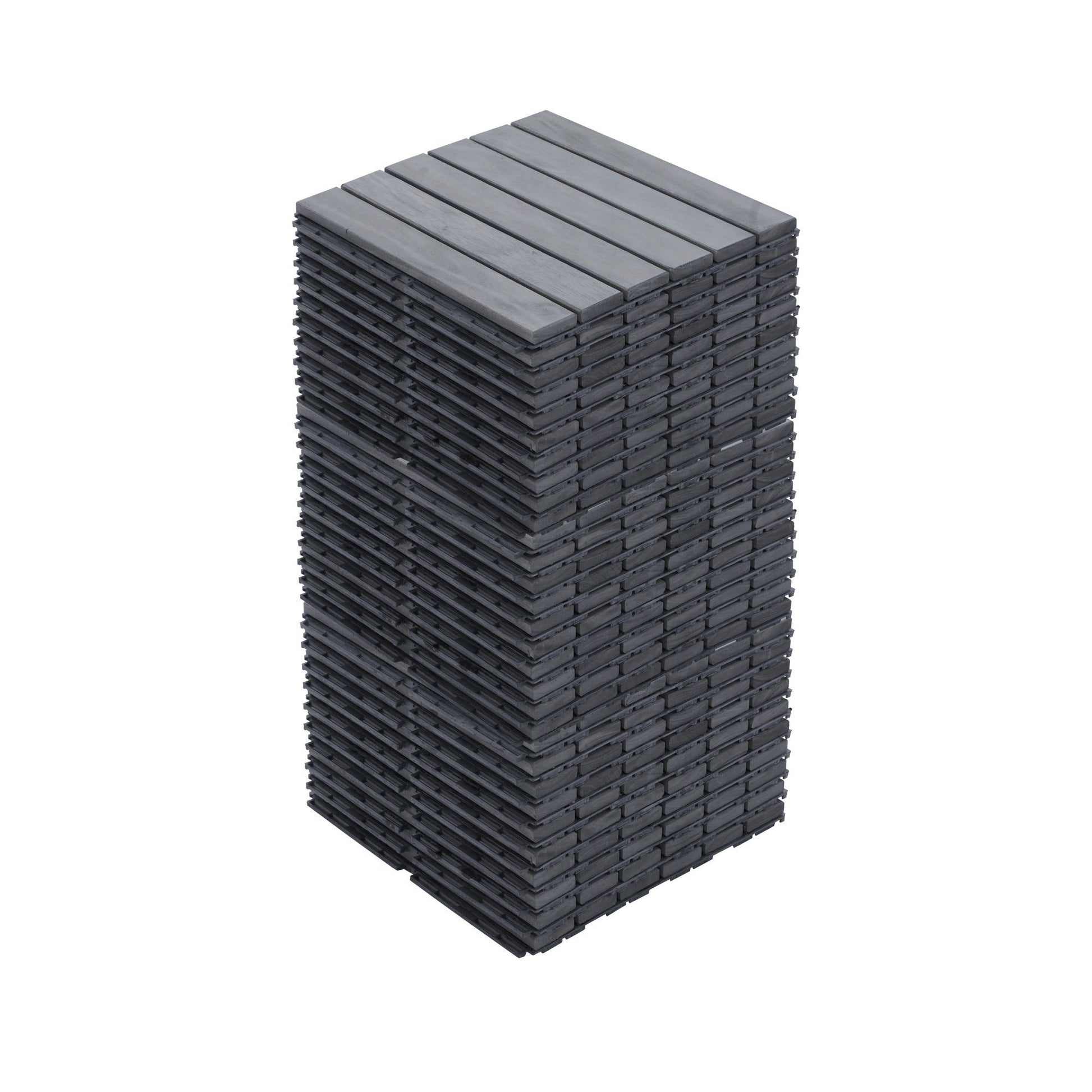 10 Piece Interlocking Deck Tiles Striped Pattern, Square Acacia Hardwood Outdoor Flooring For Patio, Bancony, Pool Side - Light Gray