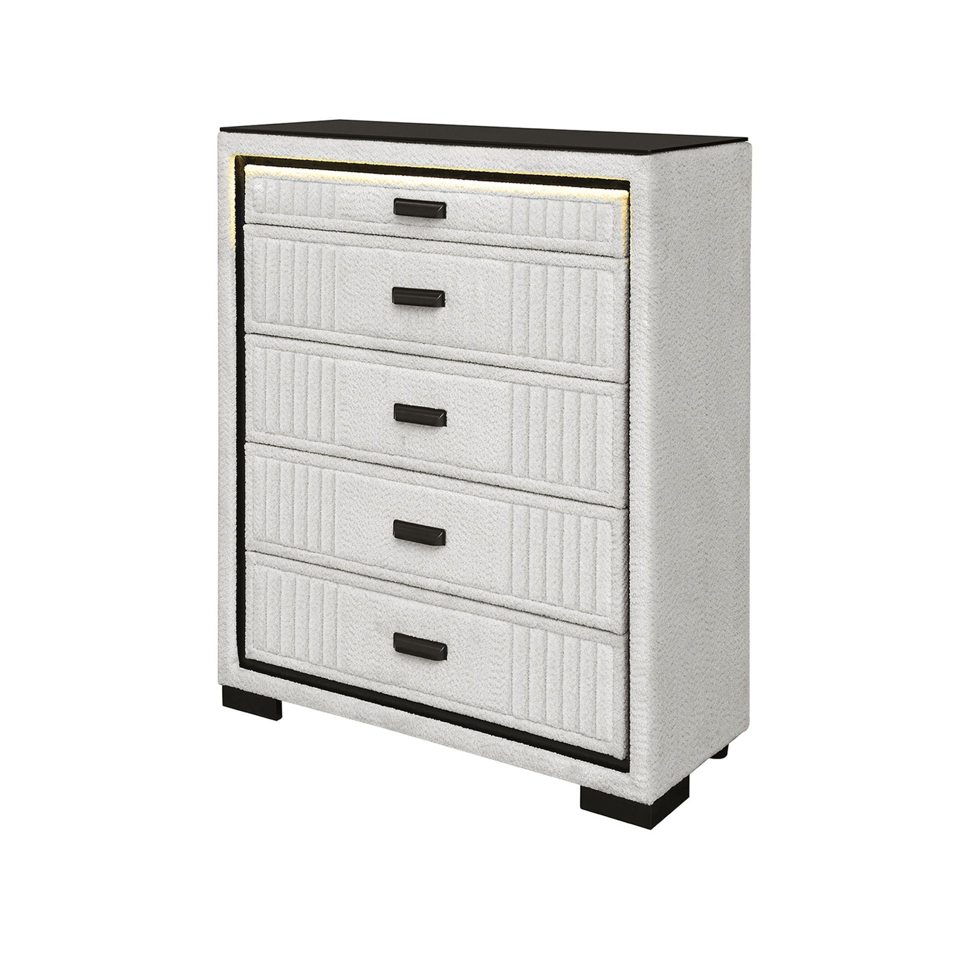 Isaiah - Chest With Upholstered Frame, LED Lighting, Block Feet - White / Black