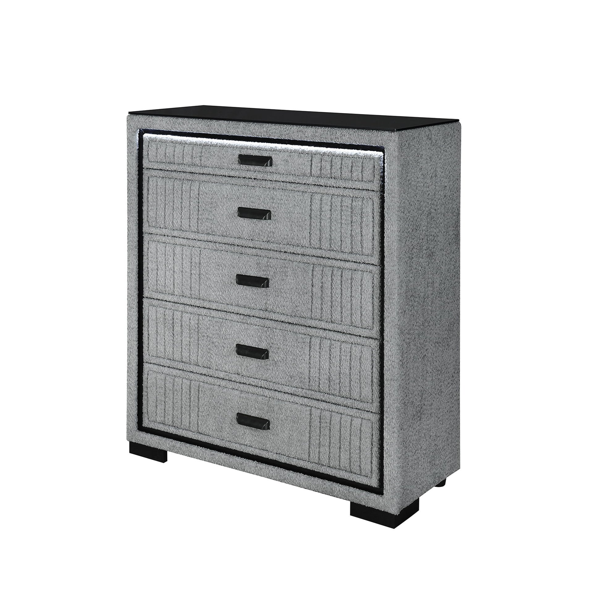 Isaiah - Upholstered Chest With LED Lighting, Frame, Block Feet - Gray