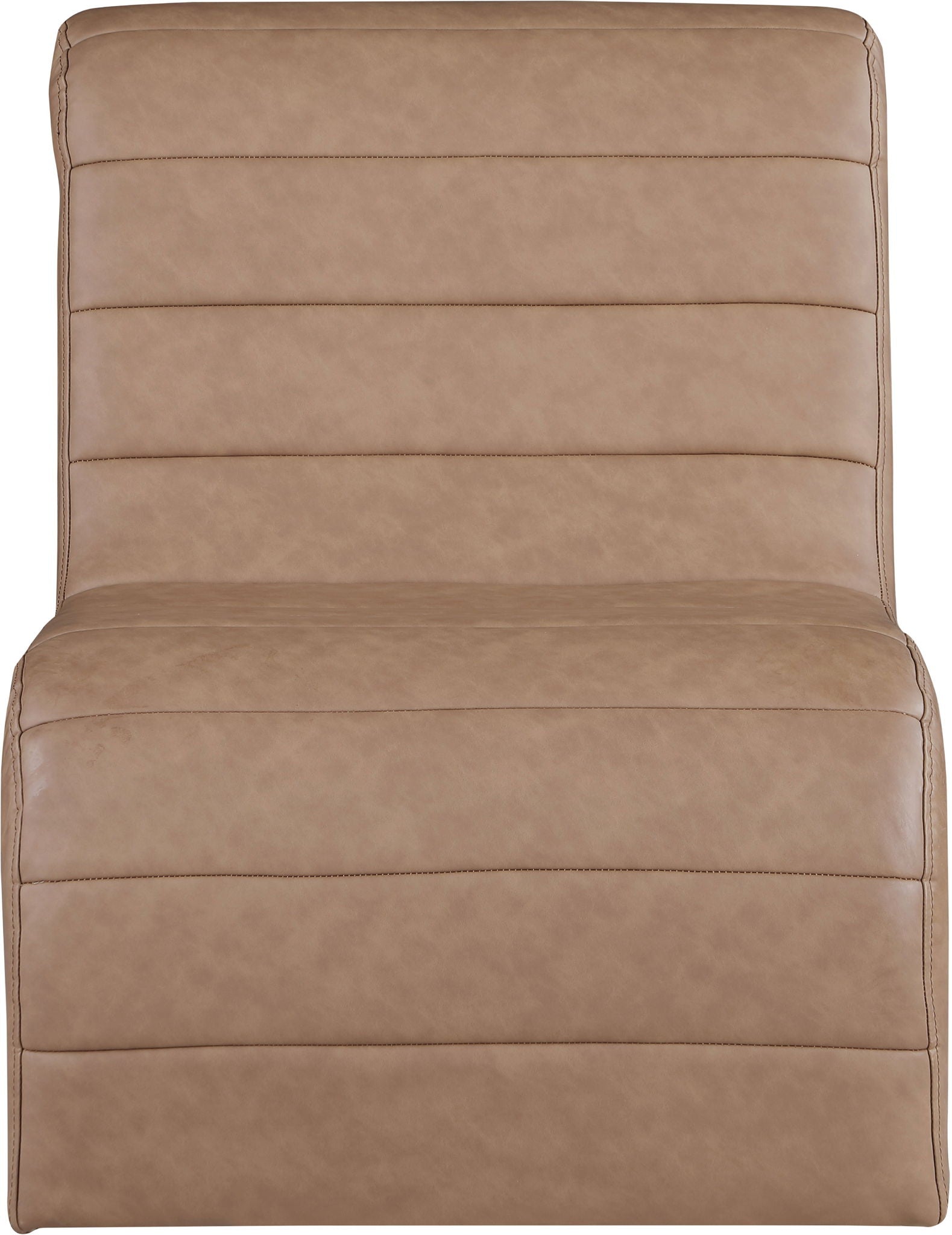 Count on this Ivy vegan leather accent chair quickly becoming the most coveted seat in the house. Wrapped in soft vegan leather and adorned with a channel tufted design, its curved shape offers unparalleled comfort and support. Designed for the modern home, it effortlessly blends contemporary aesthetics with luxurious materials. Whether placed in a cozy corner or as a standout piece in your living room, this chair invites you to unwind in unparalleled elegance and enjoy a moment of tranquil indulgence.