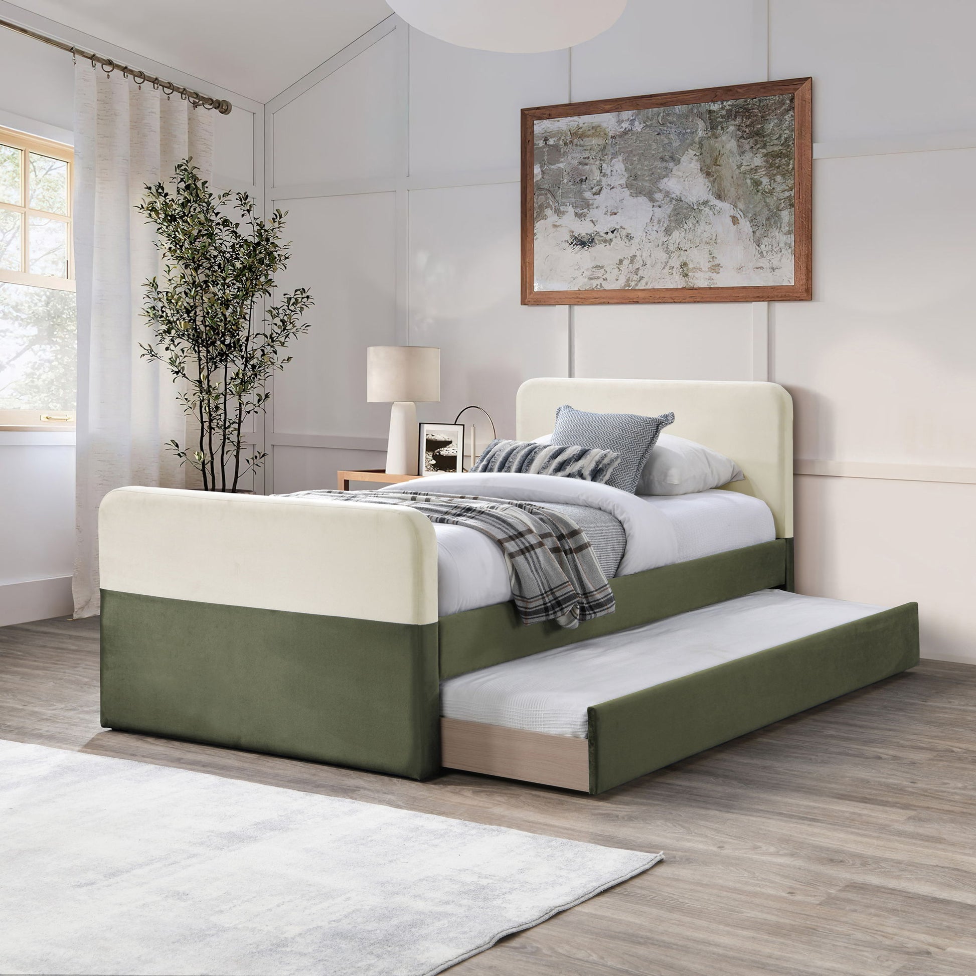Ivy - Twin Trundle / Storage Bed - Olive / Cream