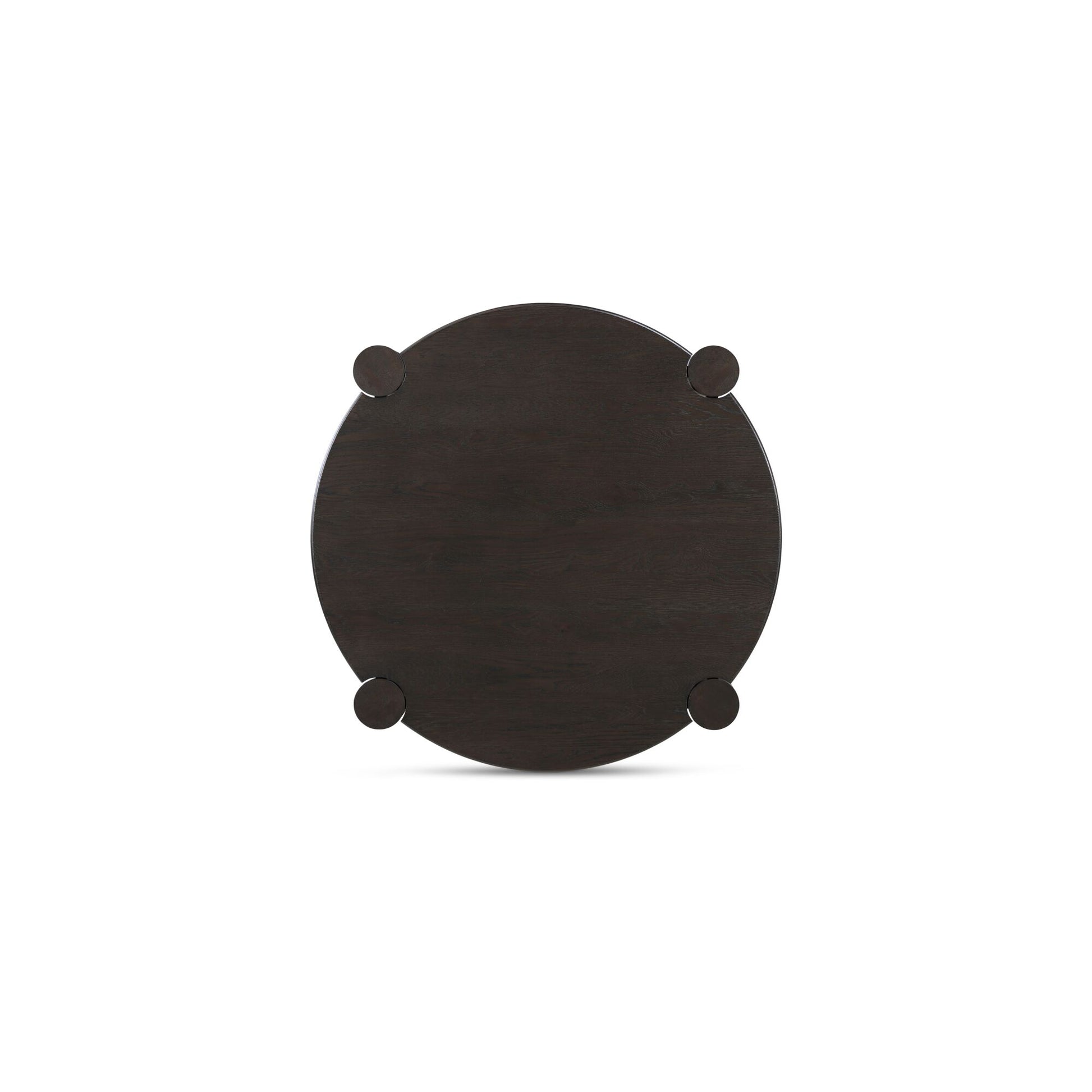 Built to round things out. A solid oak top with a smooth bullnose edge meets four sculptural column legs in a bold joinery detail that�s all craft and confidence. The legs add weight and definition to the rounded form, striking a balance between soft curves and strong structure. Finished in a wire-brushed dark brown, it�s grounded, sculptural, and made to hold the room and the conversation.
