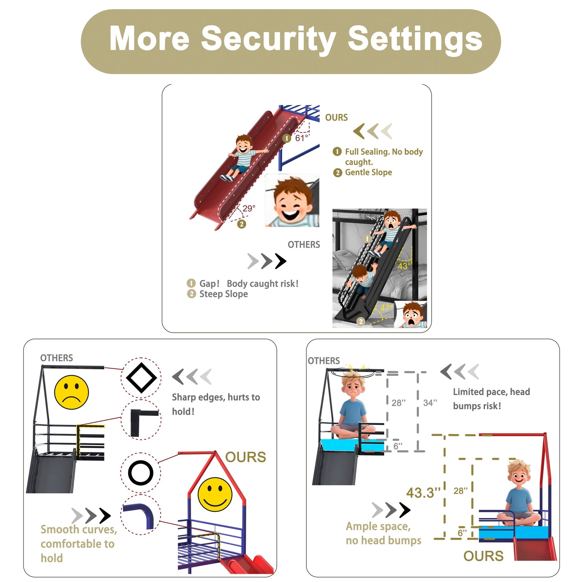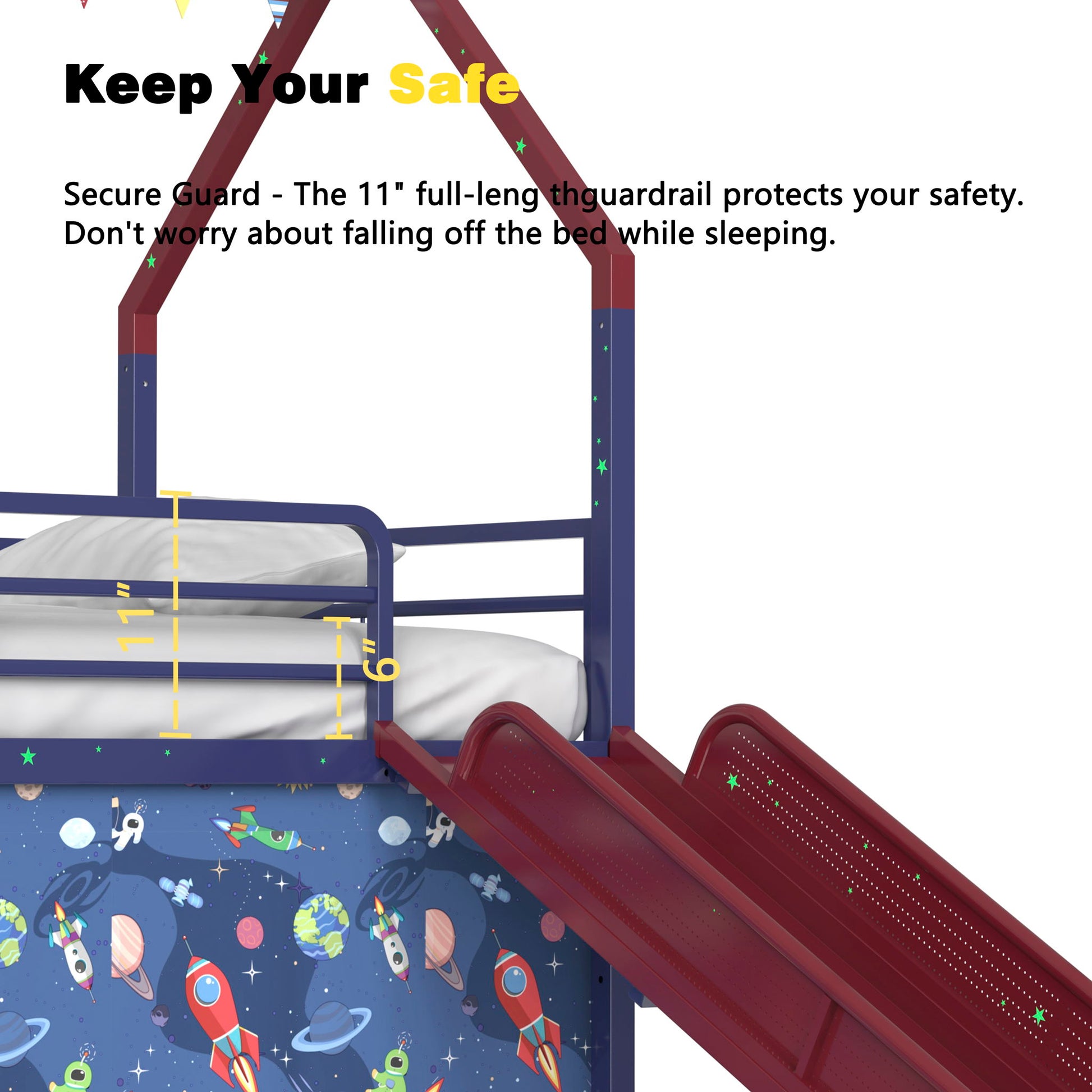 - Safety-First Design for Kids: Designed with your child's safety in mindfully enclosed slide to prevent pinching, smooth rounded edges, reinforced guardrails, and a low-profile ladder. Spacious bed design minimizes head bumps for a safer play experience. Perfect for sparking creativity in both boys' and girls' rooms.
