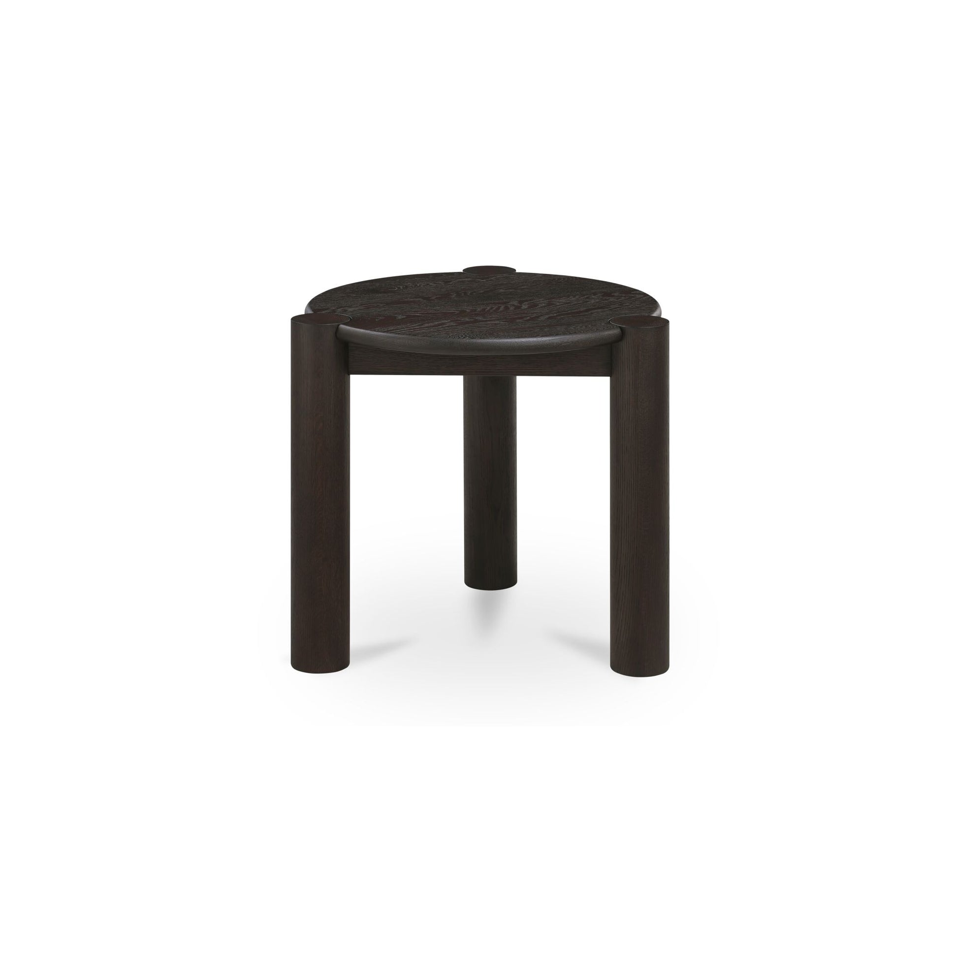 Built to round things out. A solid oak top with a smooth bullnose edge meets four sculptural column legs in a bold joinery detail that�s all craft and confidence. The legs add weight and definition to the rounded form, striking a balance between soft curves and strong structure. Finished in a wire-brushed dark brown, it�s grounded, sculptural, and made to hold a drink (or two).