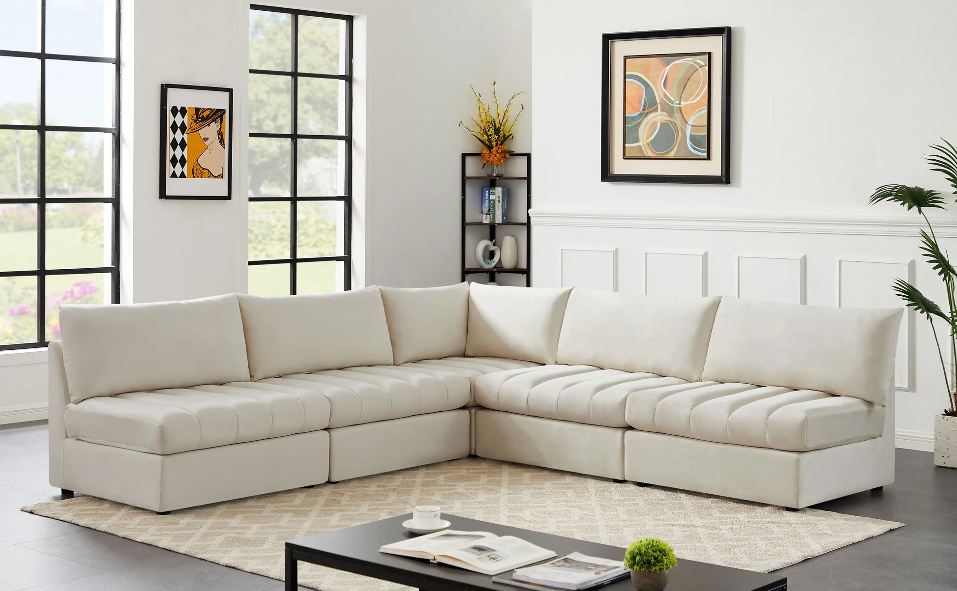 Jacob - Modular Corner Armless Sectional 5 Piece - Cream