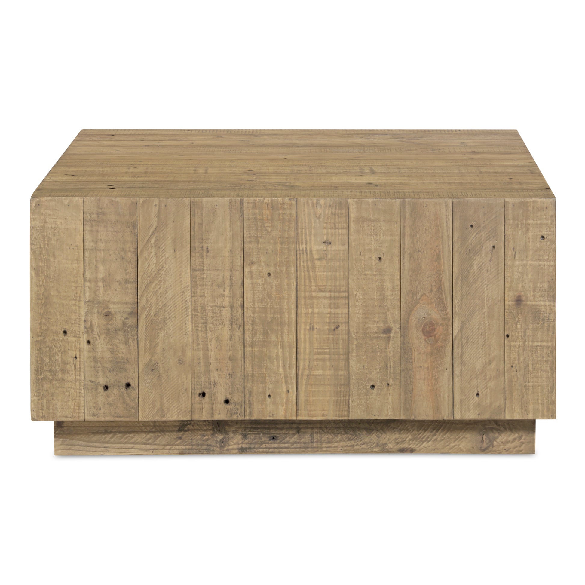 The Jasper coffee table's reclaimed pine construction takes center stage thanks to the clean lines and simple form design. This eco-friendly table showcases unique markings, knots, and nail holes that add vintage appeal and character, while its joinery detailing and pedestal base complete the piece. Its hollow interior ensures effortless mobility, making it a versatile addition to any space.