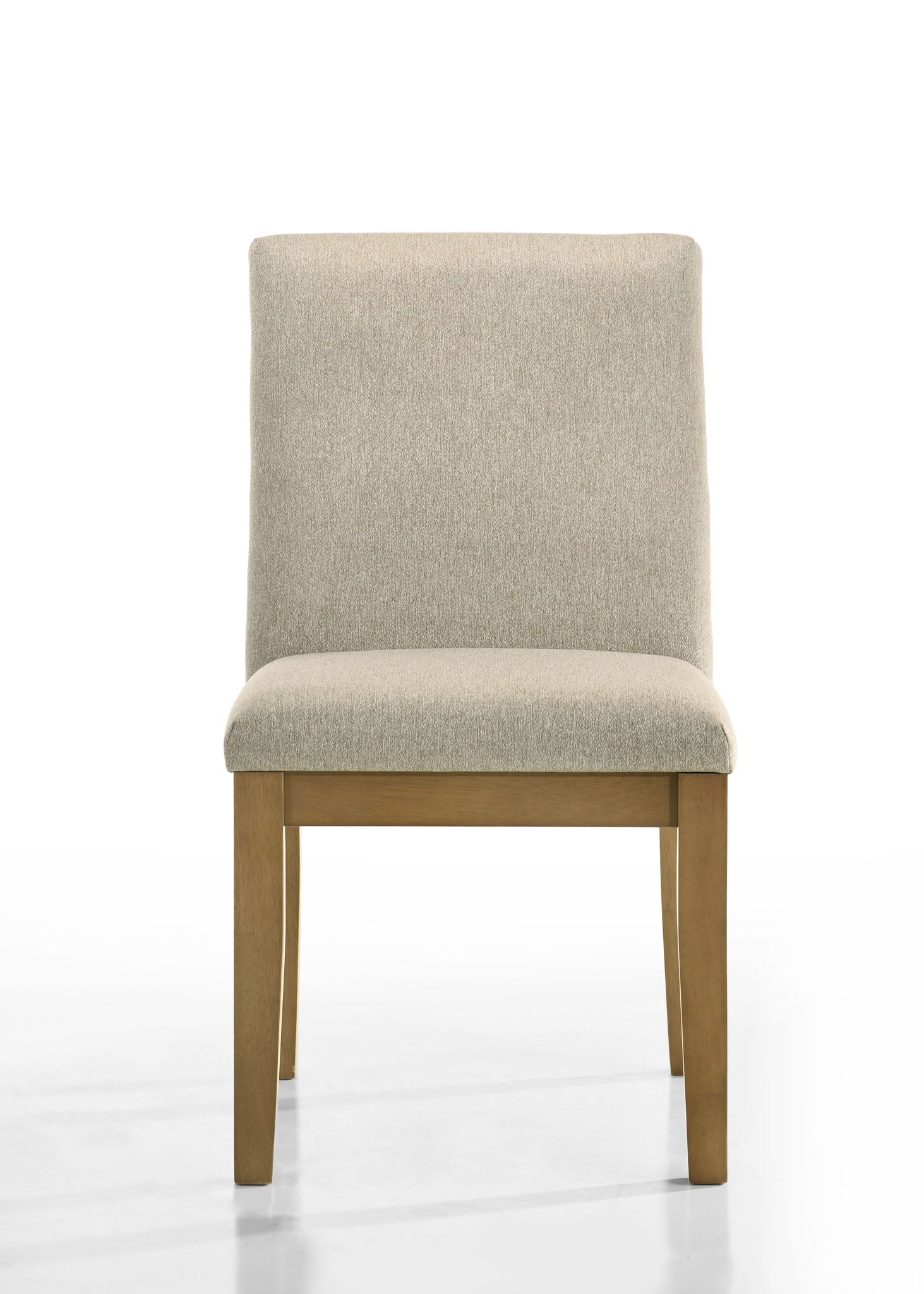 Jasper - 5 Piece Wide Contemporary Round Dining Table With Beige Fabric Chairs (Set of 5) - Black