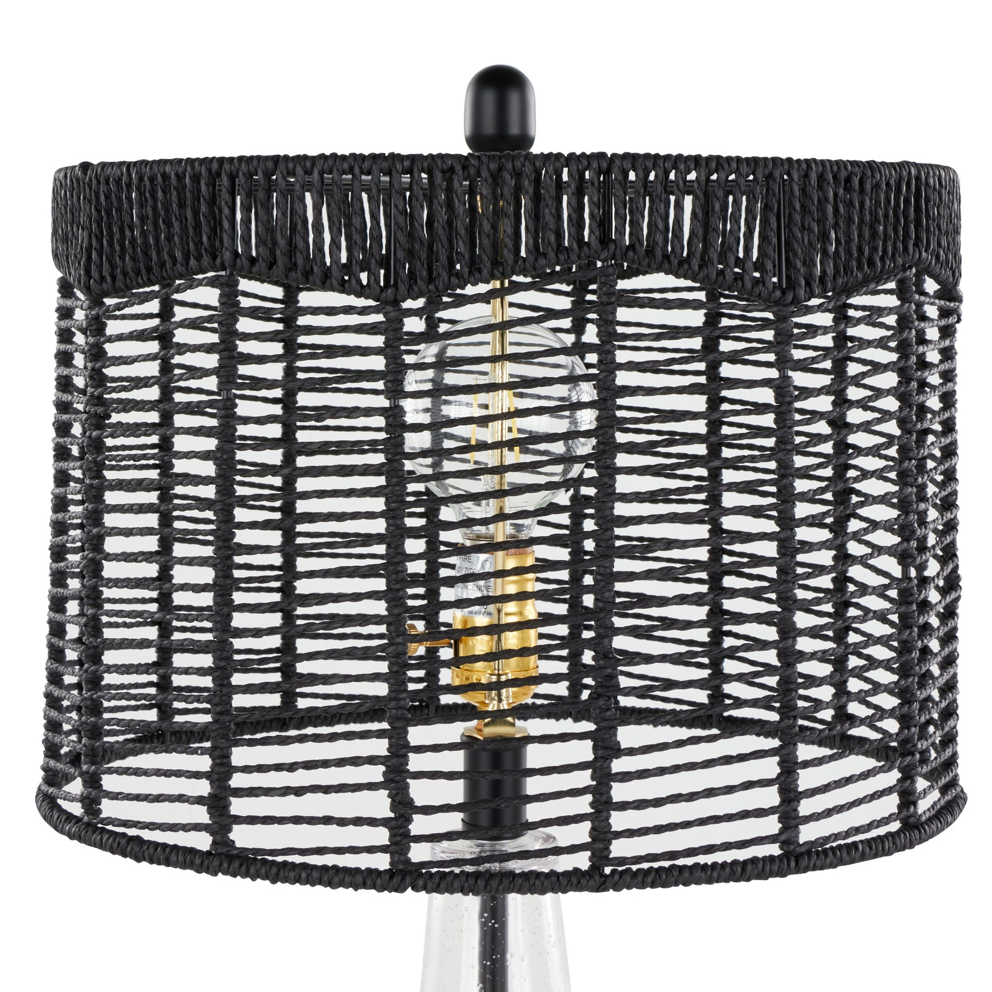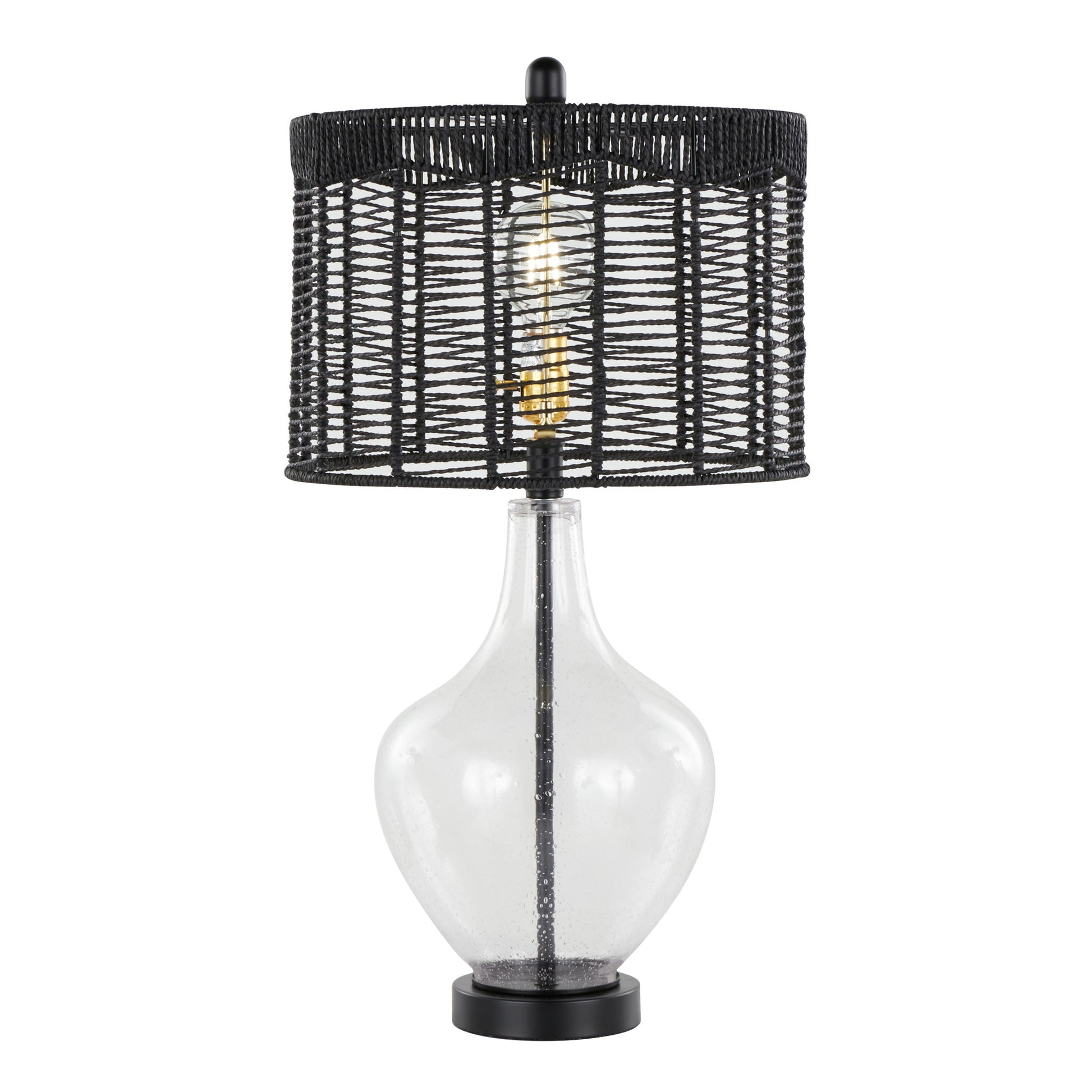 - Elegant Construction: The lamp boasts a clear seeded glass body complemented by black metal accents, providing a stylish and sophisticated look that enhances your home decor.