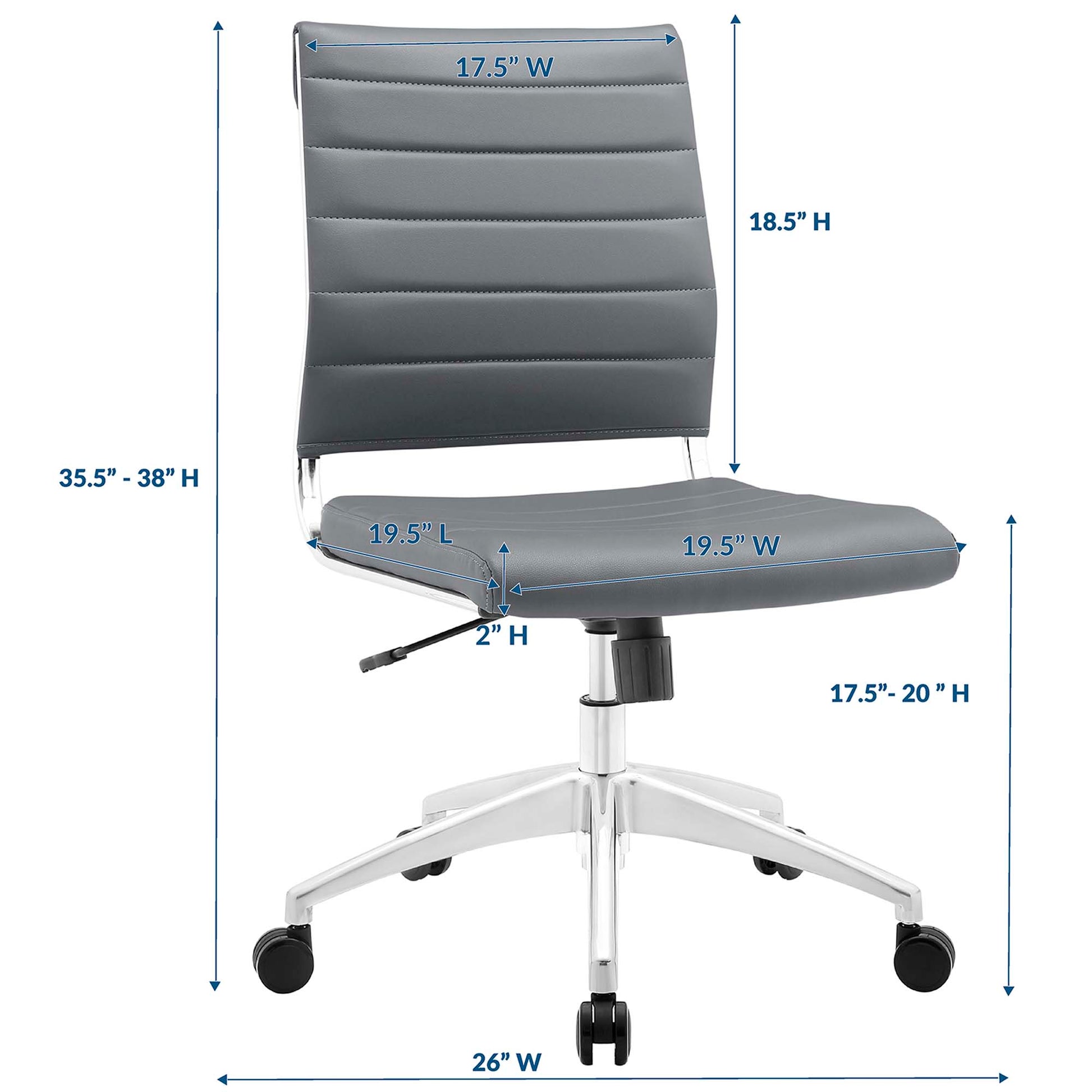 Steer the course and sail to an island called style. Jive is the result of chair makers who decided to design a chair that just works. Functionally, it is a pleasure to sit in as the durable ribbed vinyl back provides natural posture support. The seat cushion comes well padded, while the armless construction makes this a perfect piece for conference rooms and desk work. Jive�s chrome-plated aluminum base is fitted with five dual-wheel casters, while a tension knob and tilt lock allow for easy back position adjustments. This is a chair made for the modern office and a welcome embodiment of the spirit of progress and determination.