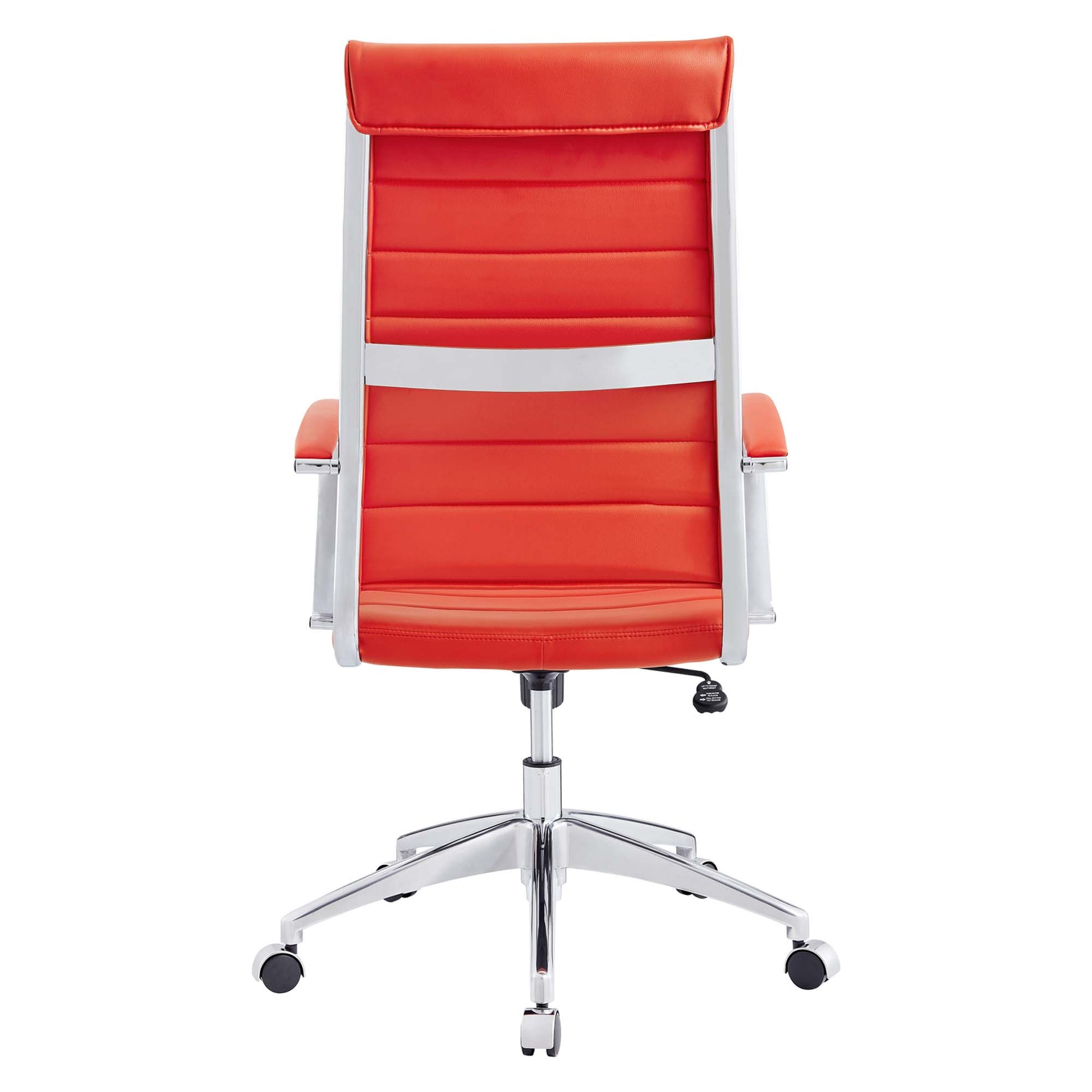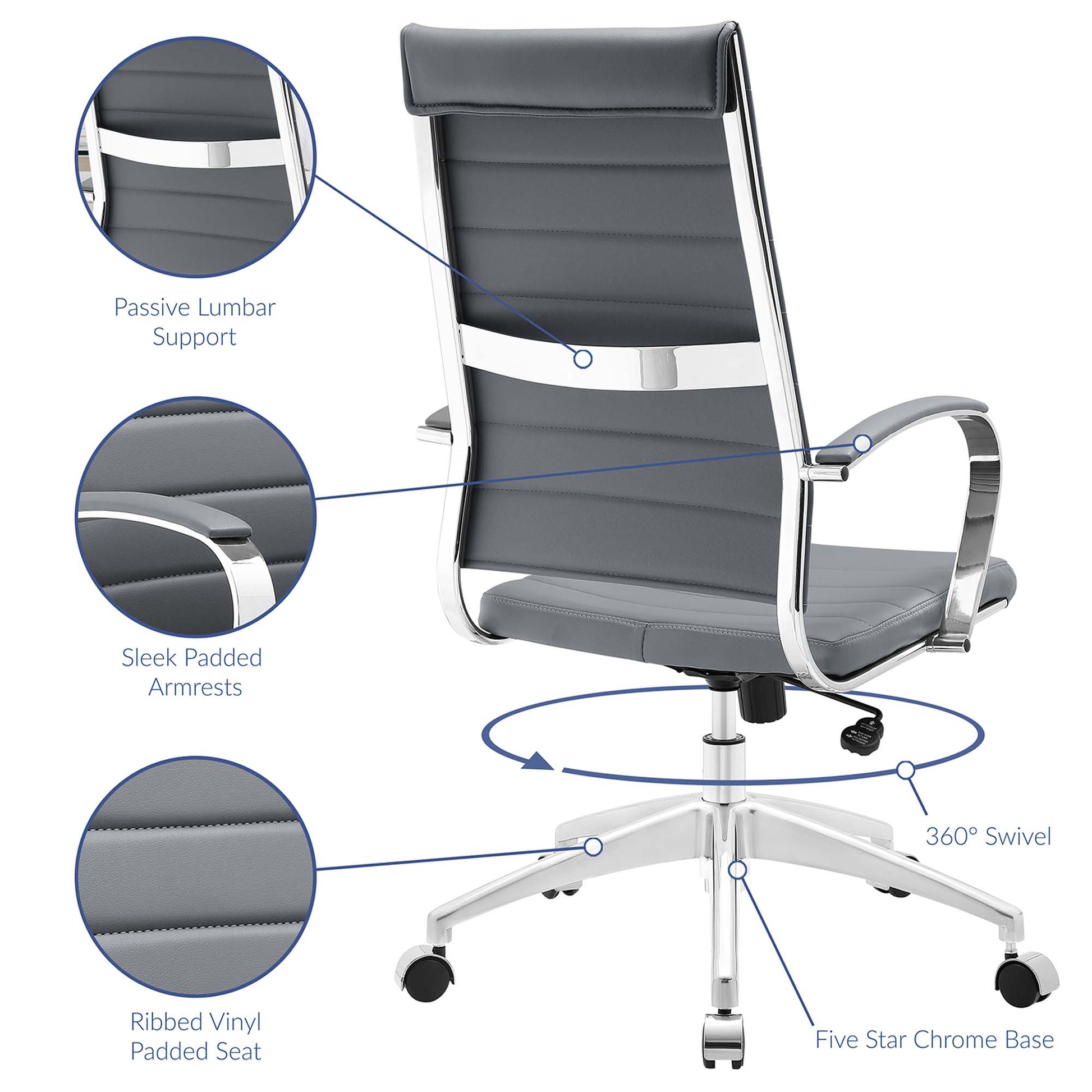 Steer the course and sail to an island called style. Jive is the result of chair makers who decided to design a chair that just works. Functionally, it is a pleasure to sit in as the durable ribbed vinyl back provides natural posture support. The seat cushion and arms are padded, while the form of the armrests was intended to maximize a 90-degree wrist angling for typing. Jive�s chrome-plated aluminum base is fitted with five dual-wheel casters, while a tension knob and tilt lock allow for easy back position adjustments. This is a chair made for the modern office and a welcome embodiment of the spirit of progress and determination.