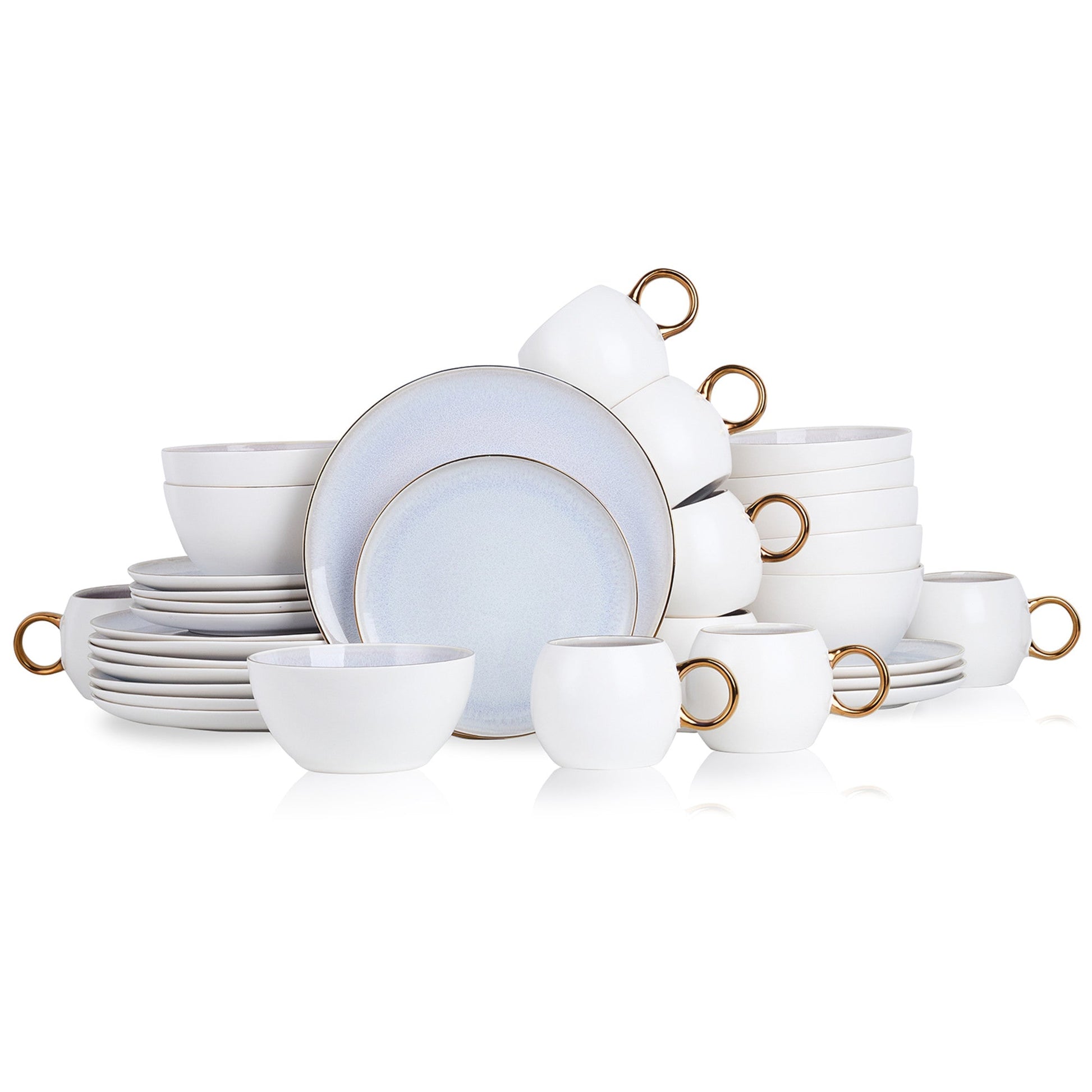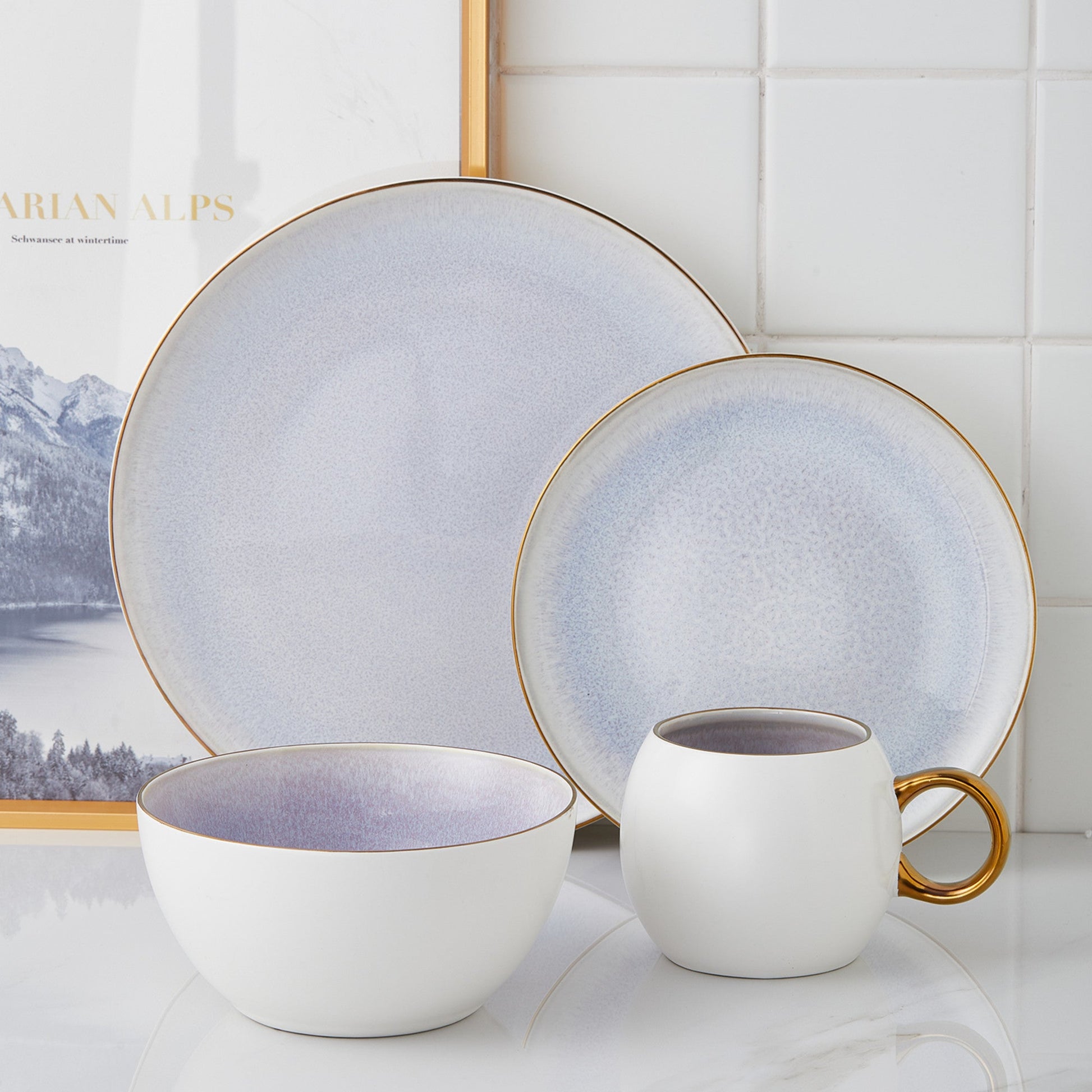 The Josephine porcelain dinnerware set is formal and unique with a stunning reactive glazed speckled interior, making each dish perfectly imperfect. The Stone Lain Josephine porcelain set includes lavender and white speckled dishes created from the reactive glaze process, making it perfect for everyday-glam dining. The collection includes 4 large round 10.2” dinner plates, 4 round 7.8” salad plates, 4 soup or pasta bowls and 4 cozy cups. Pair this set with your favorite cutlery and napkins, and you are ready to plate your food for an upscale dining experience! Josephine is microwave safe, for easy reheating. Grab a set (or three!) today and experience fun dining, at home.