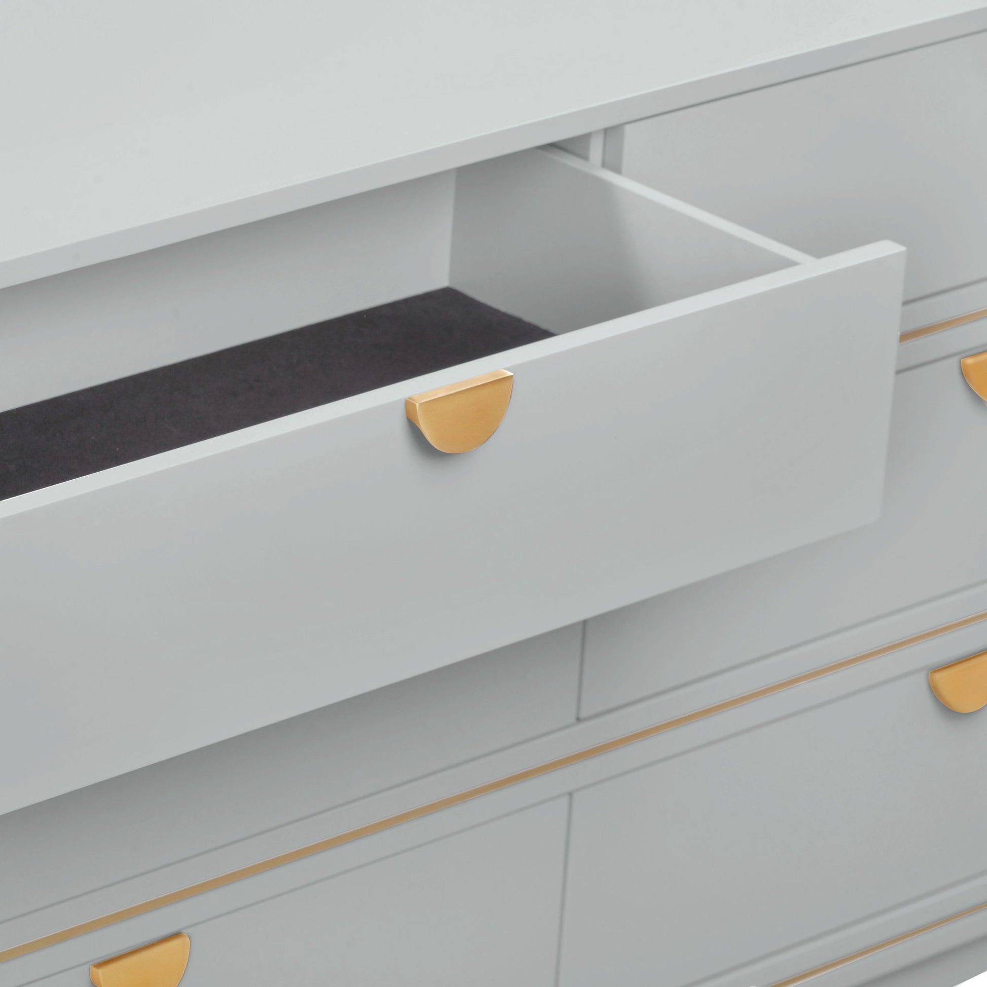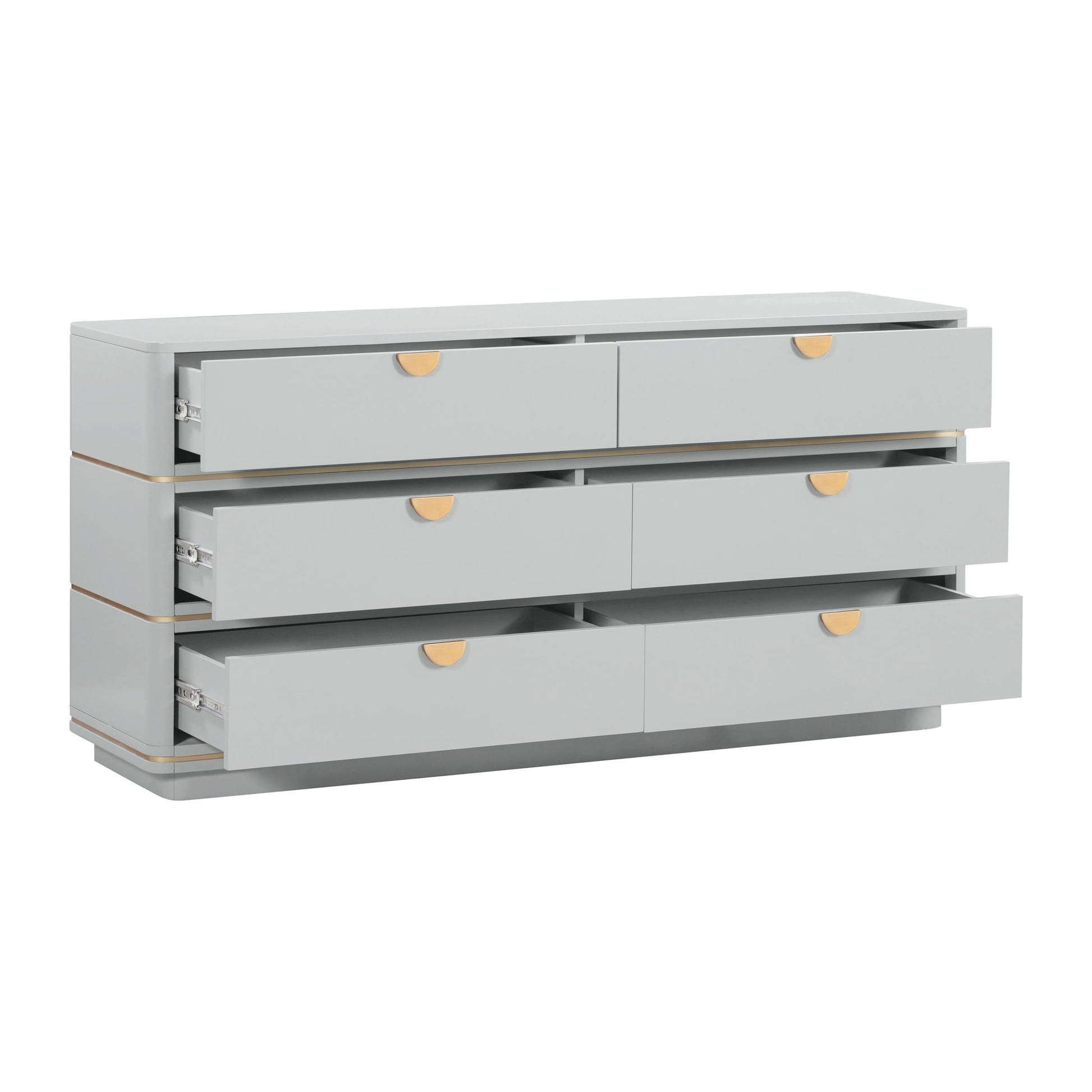 The Julieta 6 Drawer Dresser is an Art Deco masterpiece. The spacious soft-close drawers offer ample storage space, and the acacia wood material ensures great stability. Available in three classic color options, accented with brass pulls and delicate inlay, the Julieta will effortlessly add drama and sophistication to any space.