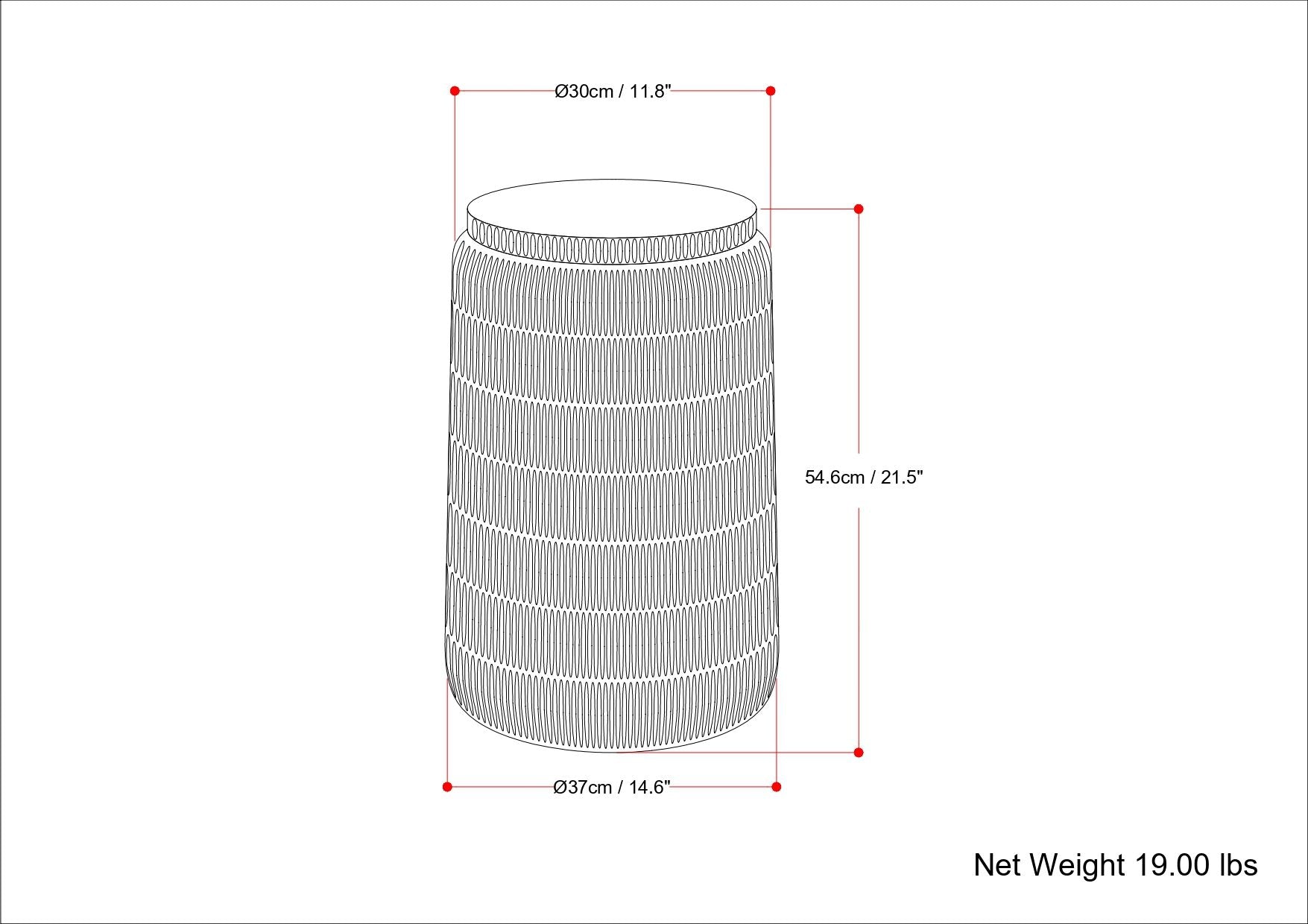 14.6"W x 14.6"D x 21.5"H - 19.0 lb