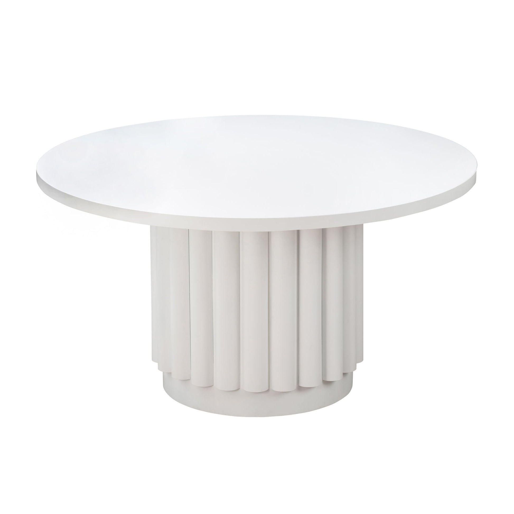 Fine dining takes on a whole new meaning with the Kali round dining table. Finished in clean white, its versatile 55" diameter size makes it great for entertaining and convenient for smaller spaces.